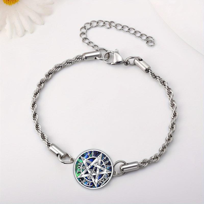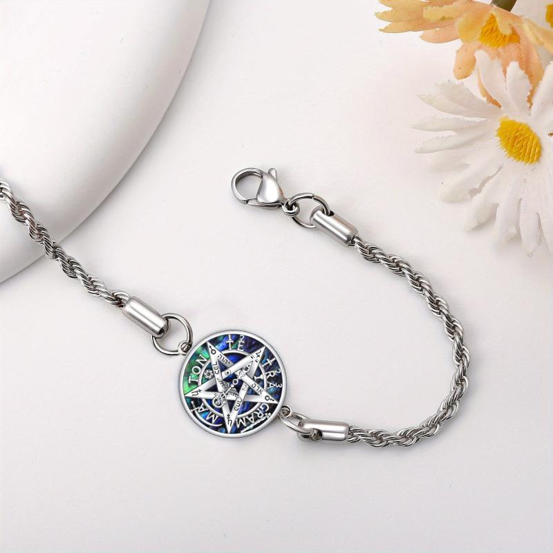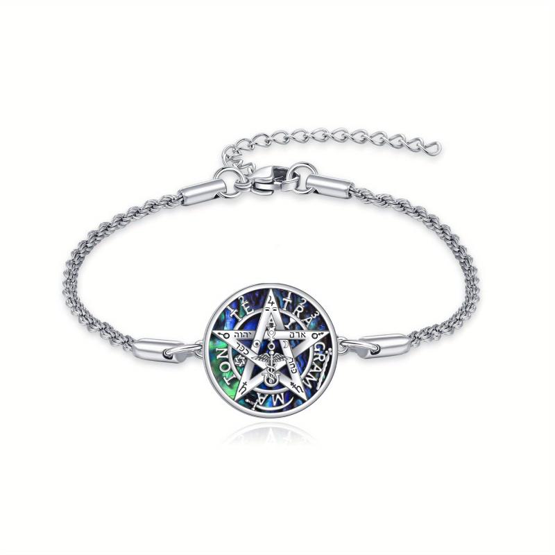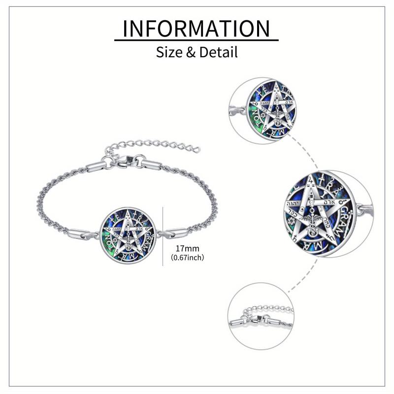 Add a touch of mystique to your ensemble with this stunning pentagram bracelet featuring a beautiful abalone shell. Crafted from high-quality sterling silver, this bracelet is both elegant and unique.