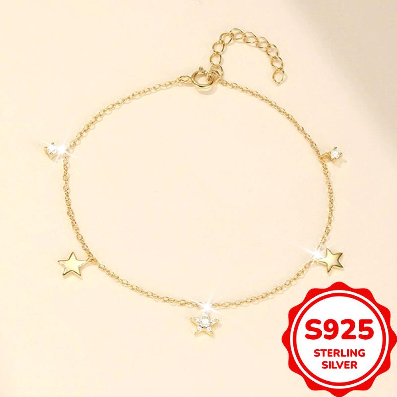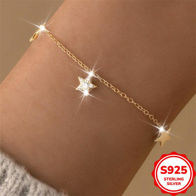 Elevate your style with this bohemian charm bracelet featuring sparkling zirconia stones. Crafted from sterling silver, it adds a touch of elegance to any outfit.