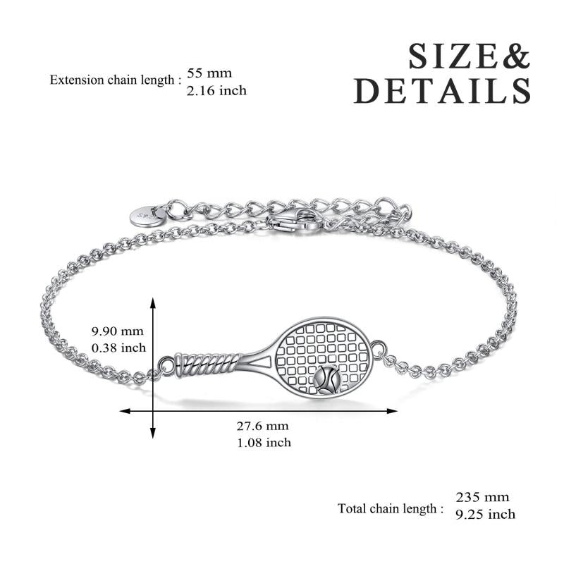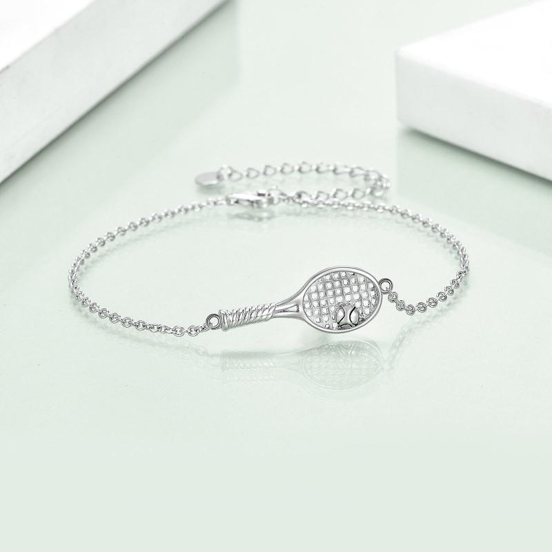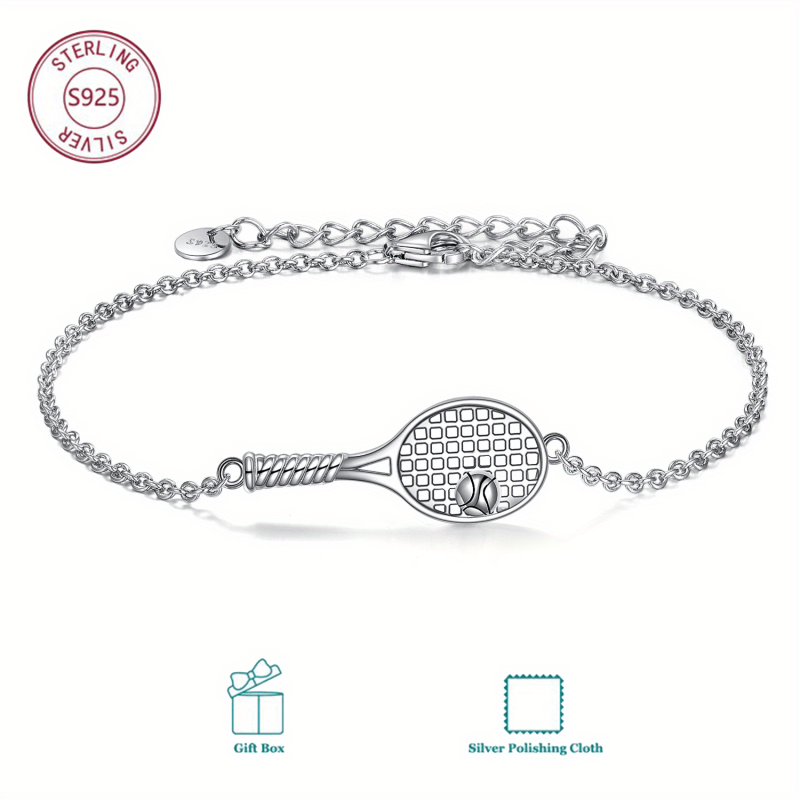 Show your love for tennis with this elegant sterling silver tennis racket bracelet. A must-have for tennis enthusiasts.