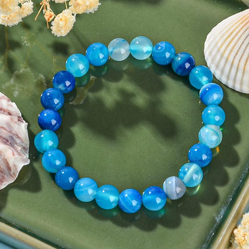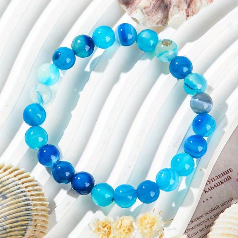 This stylish stone beaded bracelet features striped agate beads that are perfect for daily wear and beach parties. Ocean-inspired design adds a touch of elegance to any outfit.
