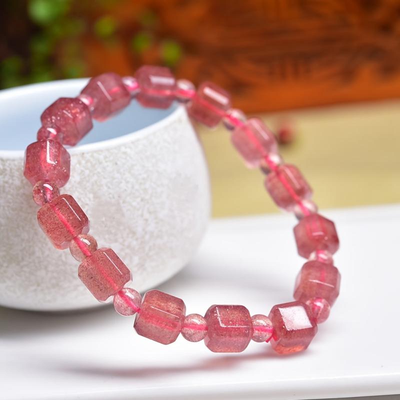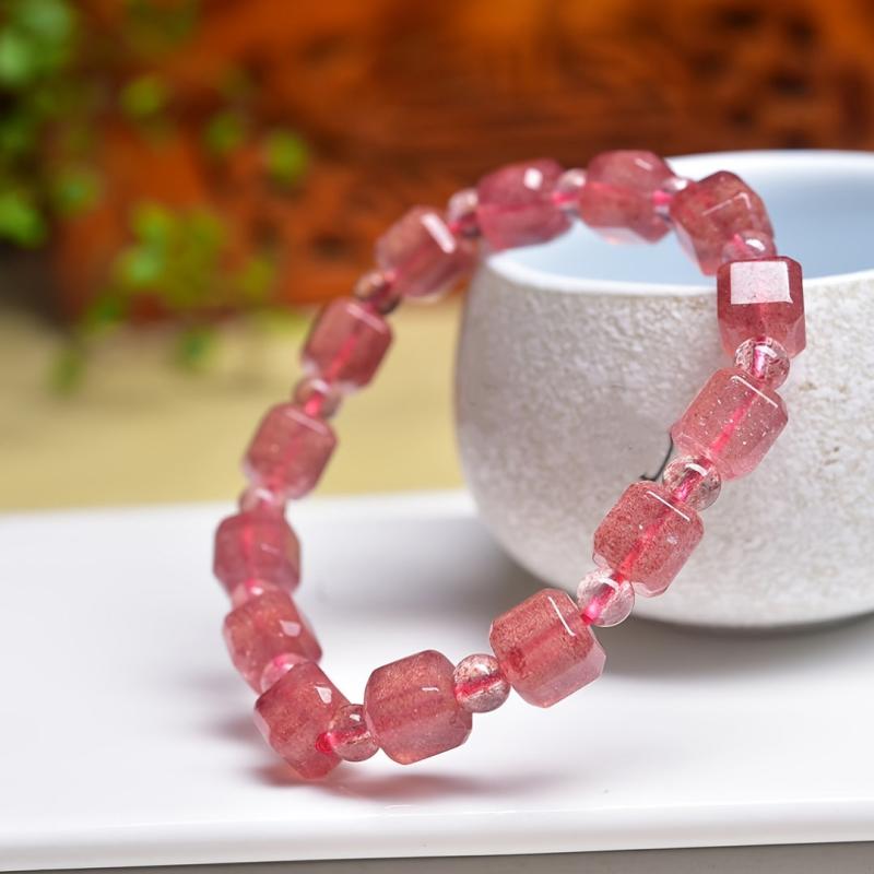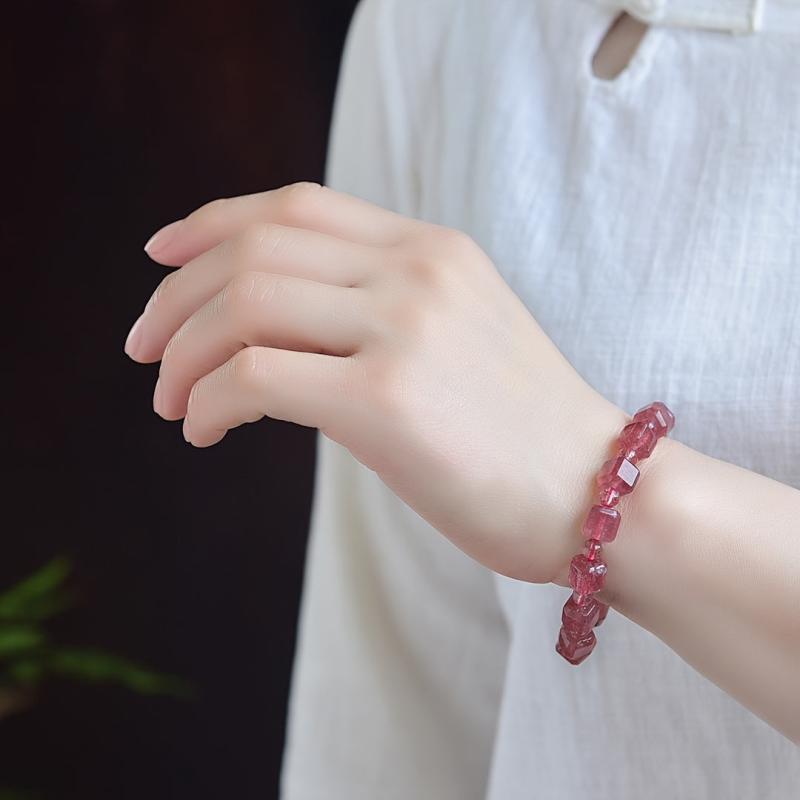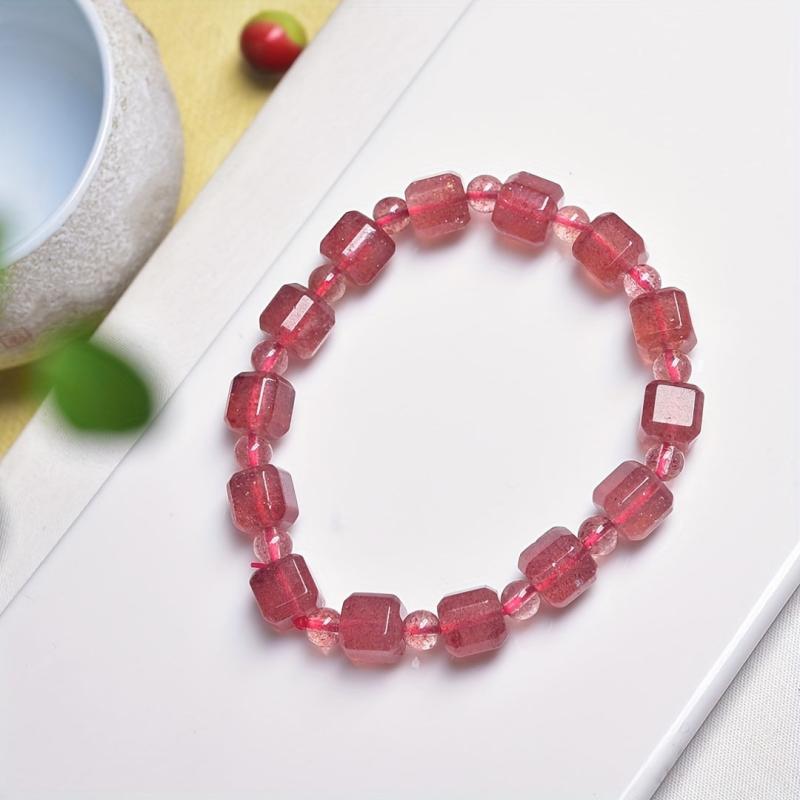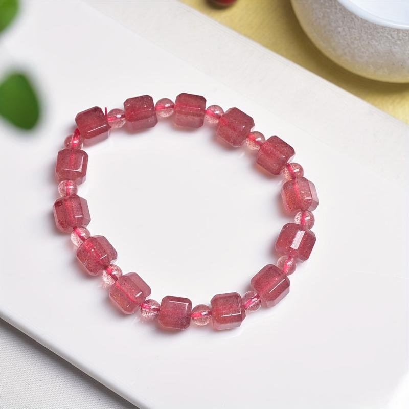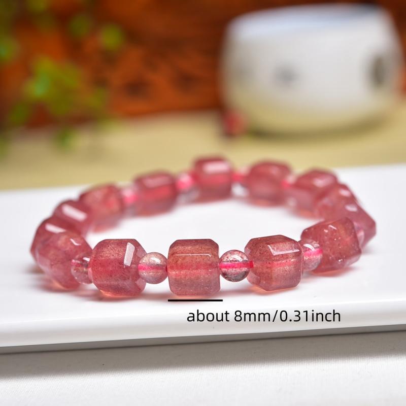 This natural Strawberry Quartz bracelet features pink crystal square beads in a boho style design. Perfect for daily wear or gift giving.