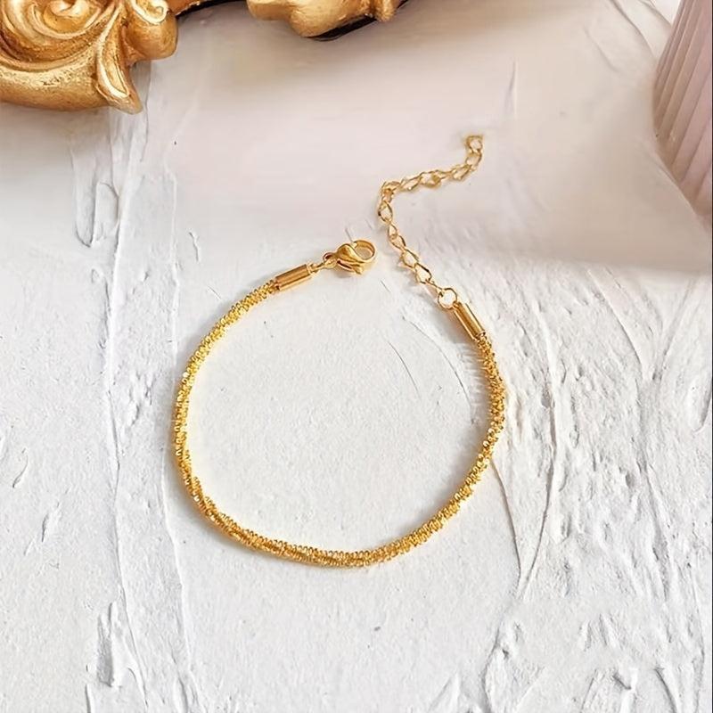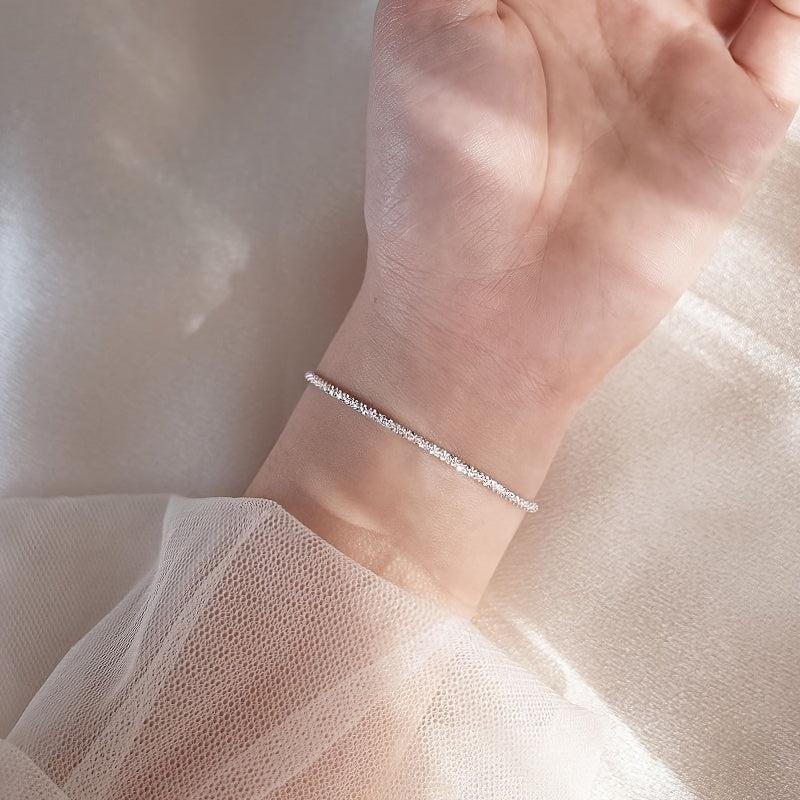 Elevate your look with this sparkling hand chain and shimmering copper bracelet. Perfect for a casual day out or special occasions like vacations.