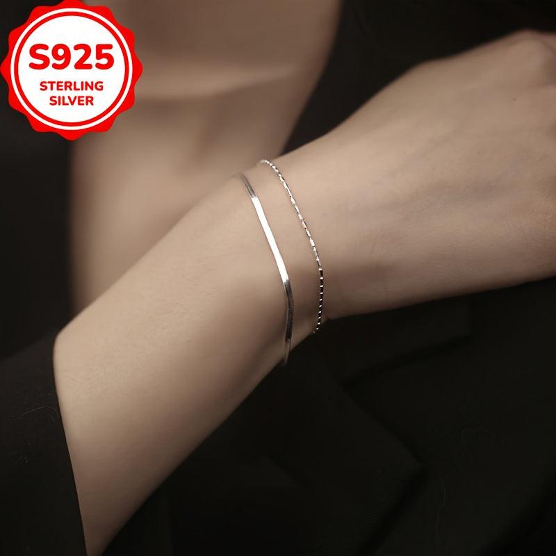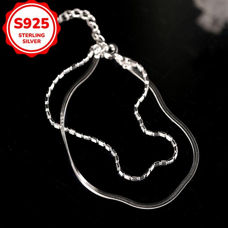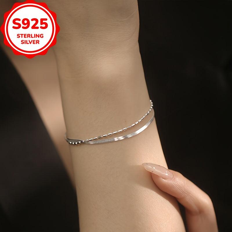 Get noticed with this low allergy flat snake bone chain rice grain double layer bracelet. It's fashionable and suitable for all occasions.