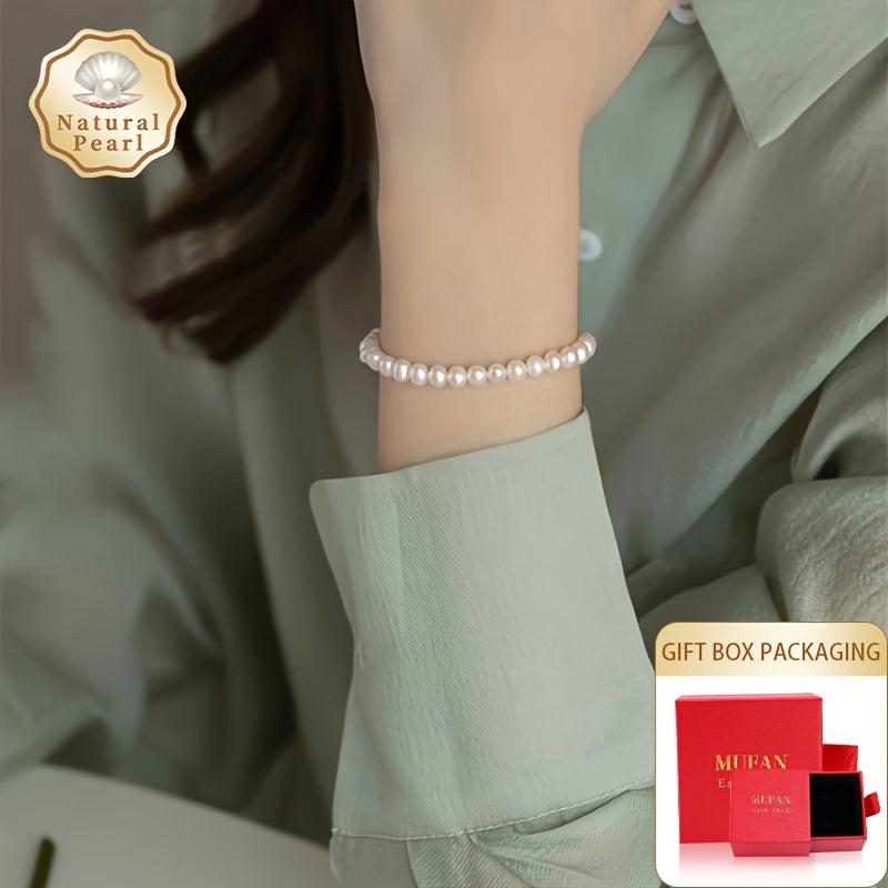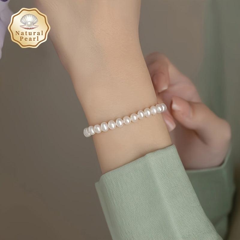 Elegantly crafted bracelet with 6mm bright natural pearls in a minimalist design.