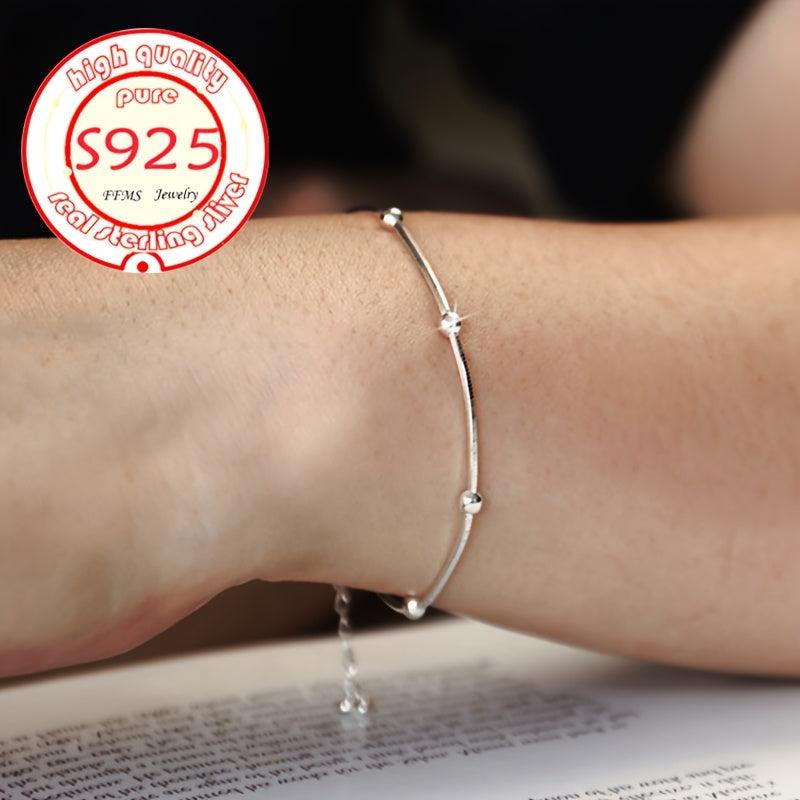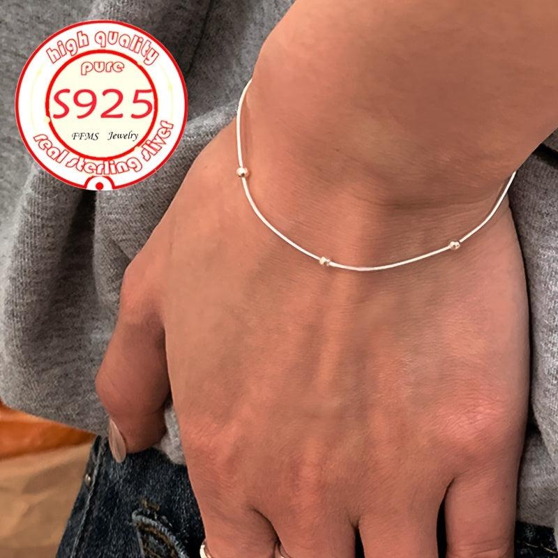 Elegant S925 silver bracelet with personalized design, featuring round beads and a snake motif. Lightweight at 3.2g, perfect for daily wear. A great gift option for ladies.