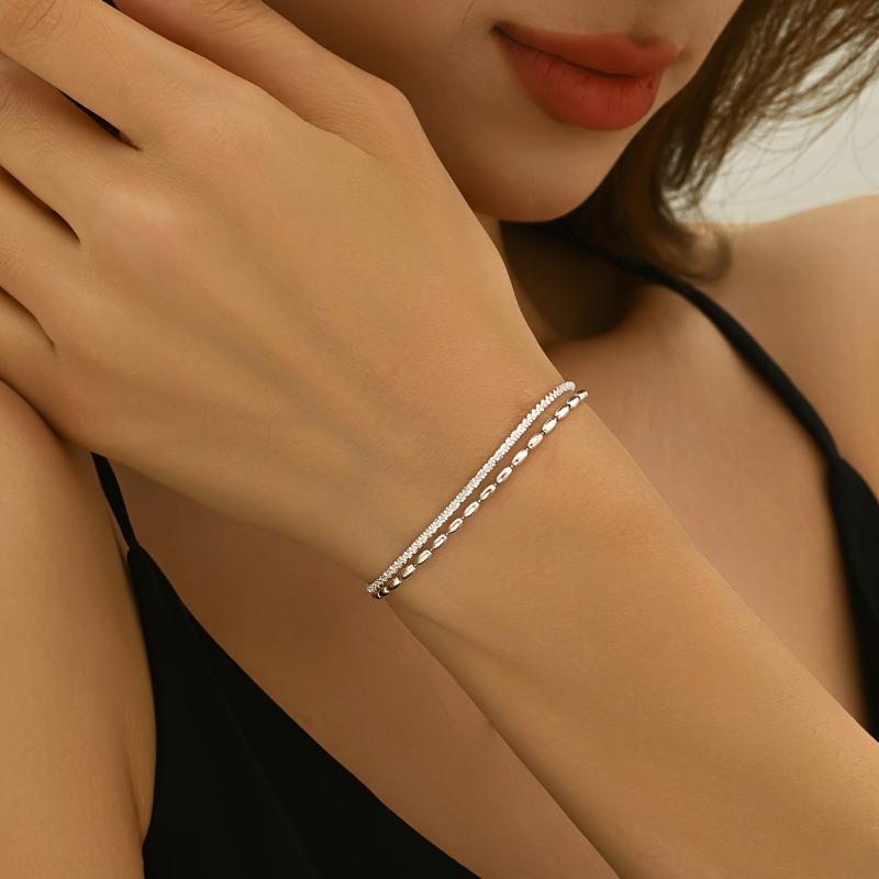 Stylish S925 Silver Spiral & Bead Layered Women's Bracelet 3.4g