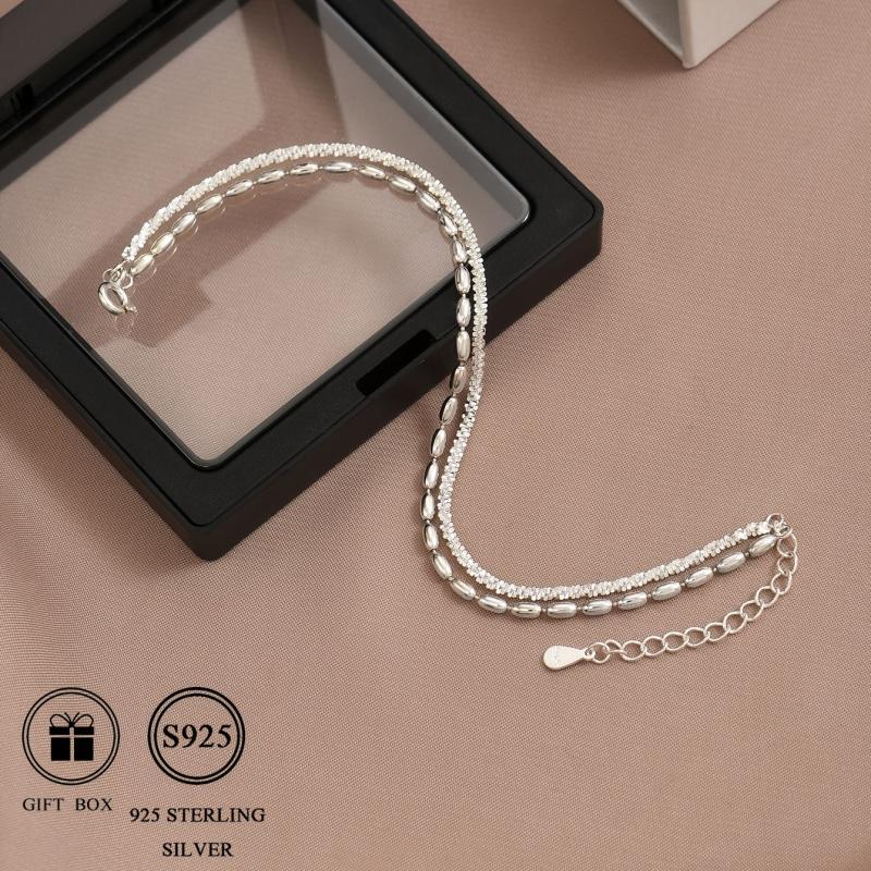 Stylish S925 Silver Spiral & Bead Layered Women&