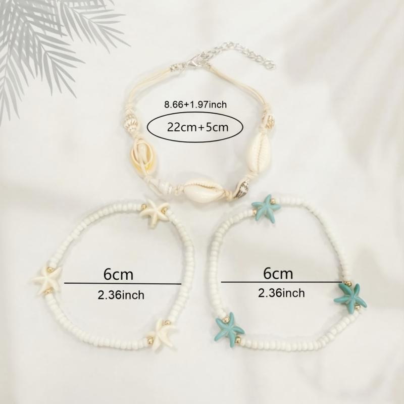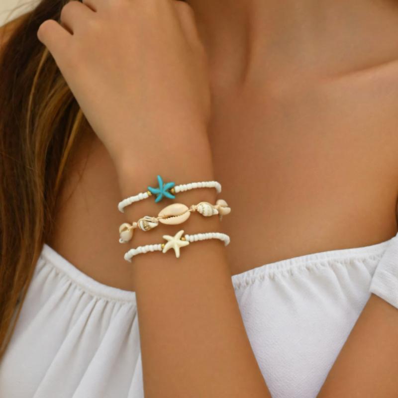 Enjoy a beachy vibe with these braided bracelets featuring conch shell and rice beads. Perfect for daily wear or vacation outings.