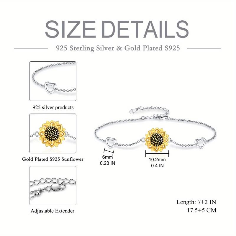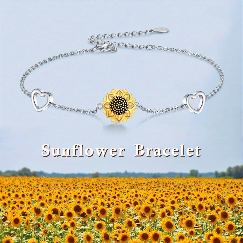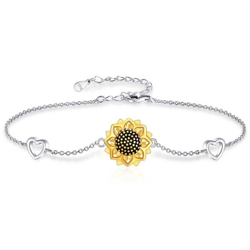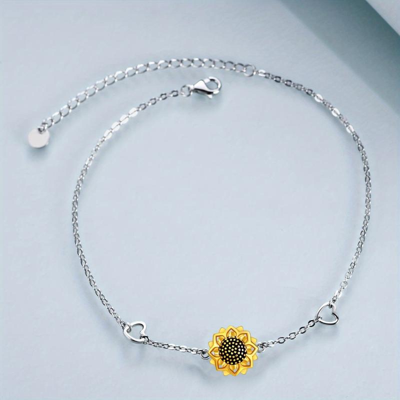 Beautiful sunflower bracelet made of high-quality 925 sterling silver, perfect for adding a touch of elegance to your look.