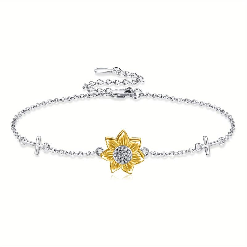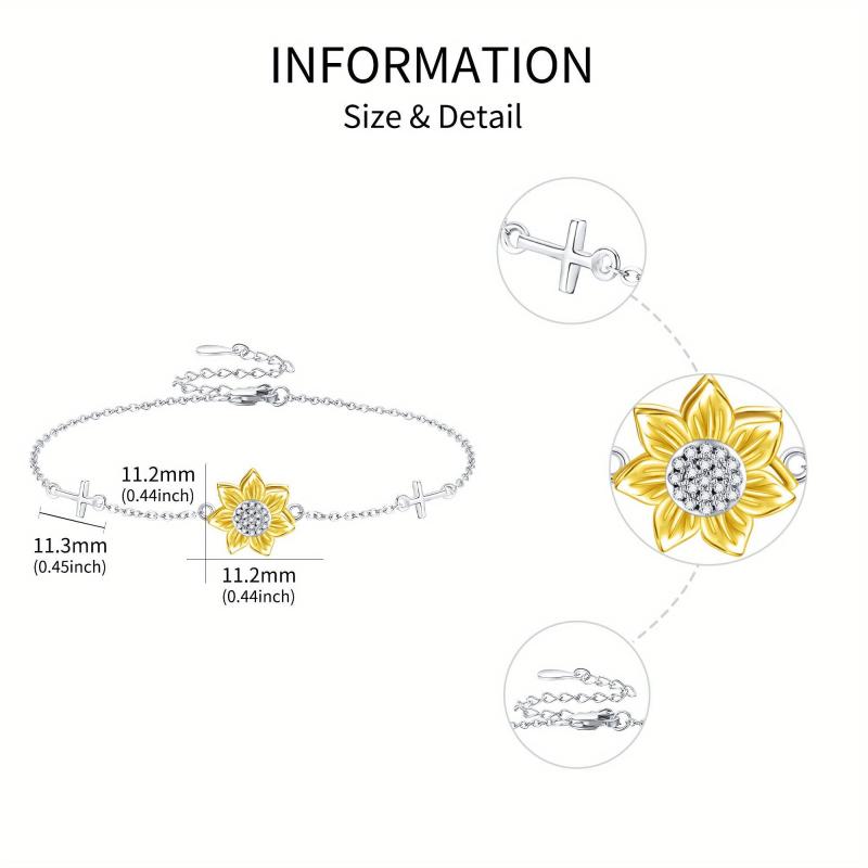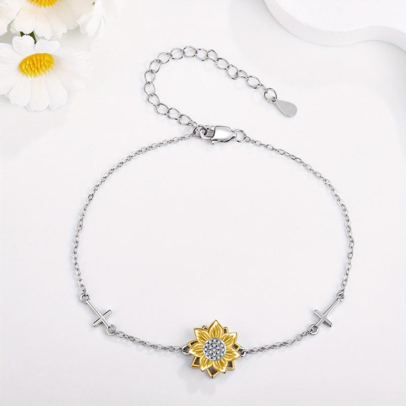 This beautiful sunflower bracelet features a stylish spinner design with a cross accent. Made of high-quality sterling silver, this bracelet is perfect for women who love sunflower jewelry.