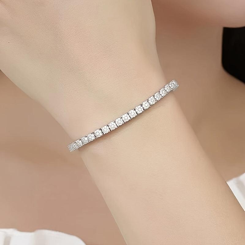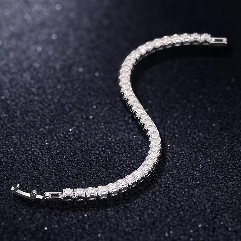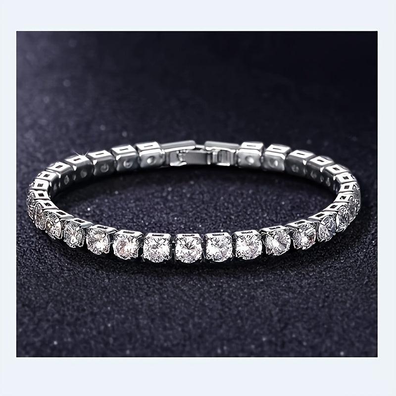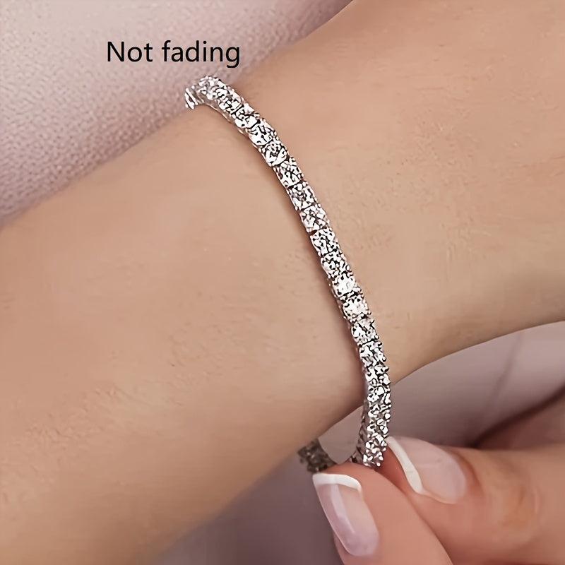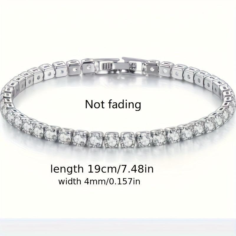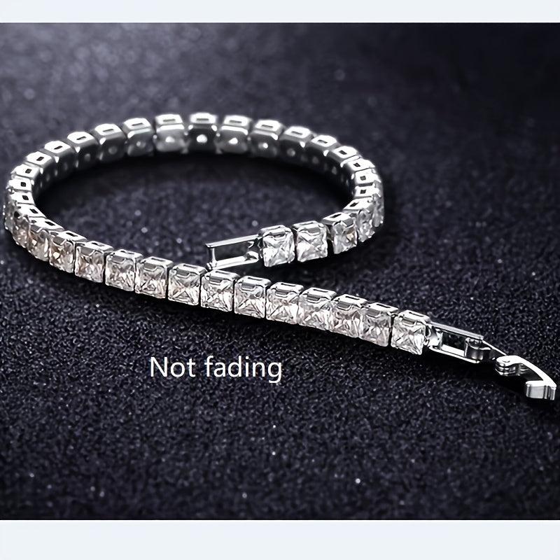 This titanium steel bracelet features sparkling square synthetic zirconia, making it a versatile accessory suitable for daily wear and special occasions. It is an ideal gift for the holiday season.