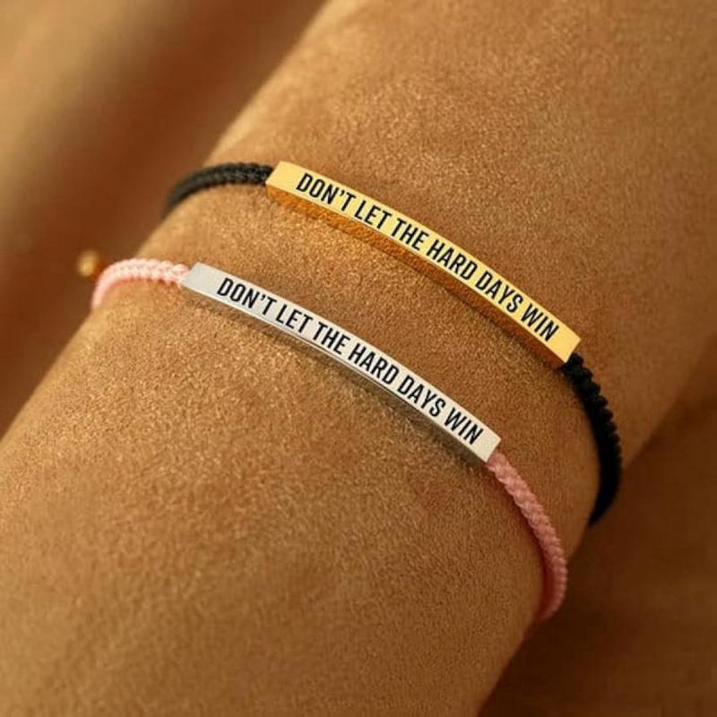 This stylish titanium steel curved tube bracelet is perfect for men and women. It features an engraved design and adjustable woven band. Give it as a lucky letter wristband jewelry gift.