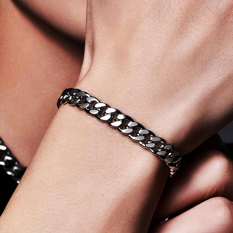 This classic Cuban chain bracelet is perfect for couples, vacations, parties, and casual wear. Made of fade-resistant and durable stainless steel with a lobster clasp.
