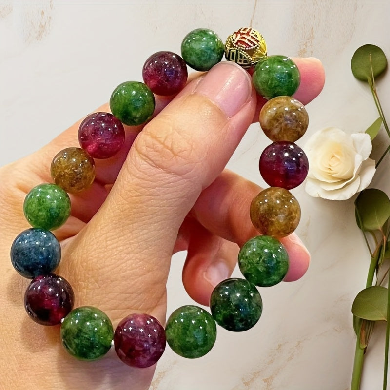 This stunning bracelet features vibrant quartz rock gemstone beads in a colorful array, perfect for healing and bringing positive energy. It makes a lucky charm with rainbow luster, ideal as a birthday gift for her or everyday wear.
