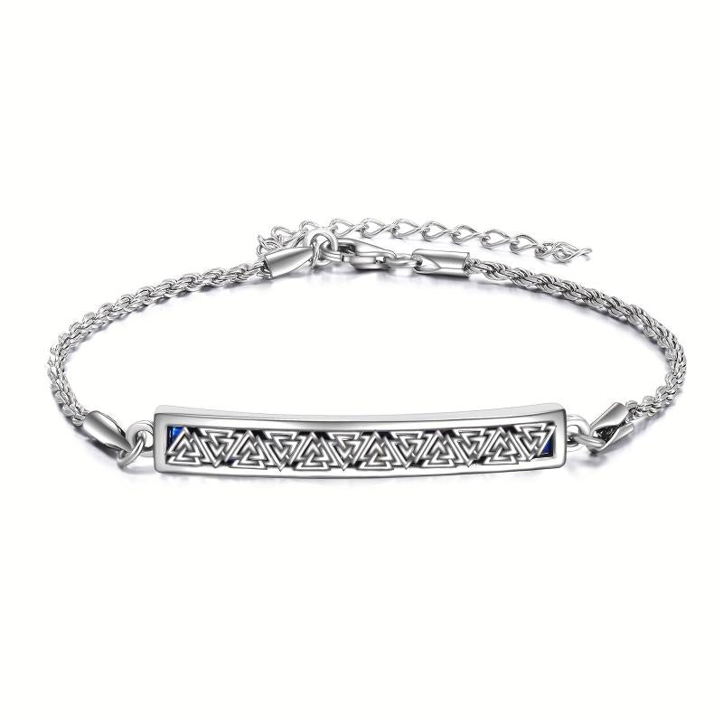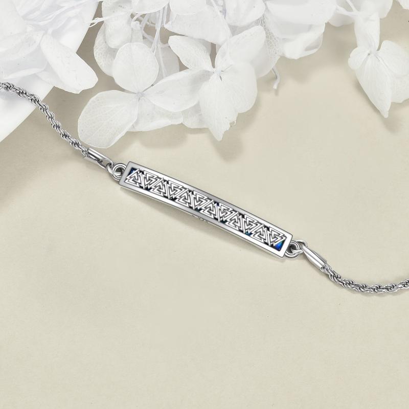 This Viking bracelet is crafted with sterling silver and features an abalone shell bar pendant. It is a unique piece of Celtic Pagan jewelry that serves as an amulet.