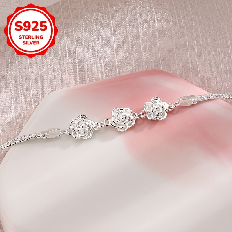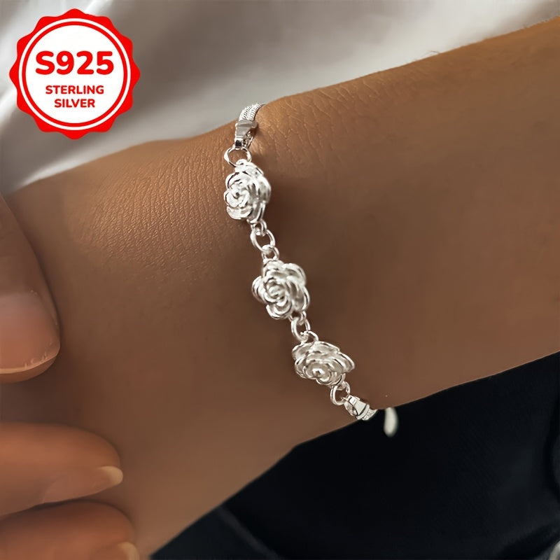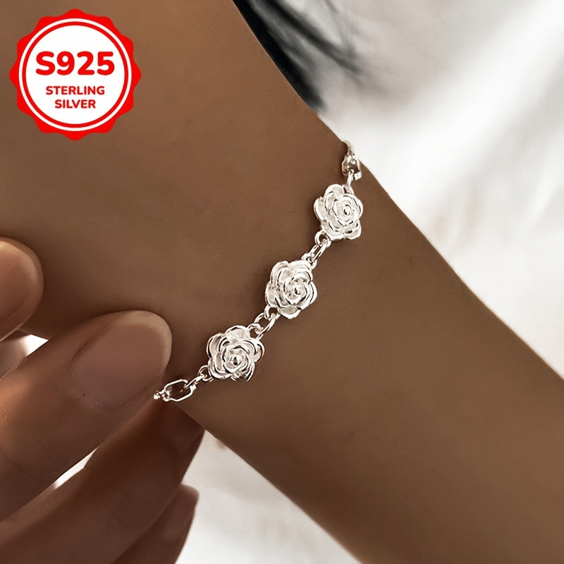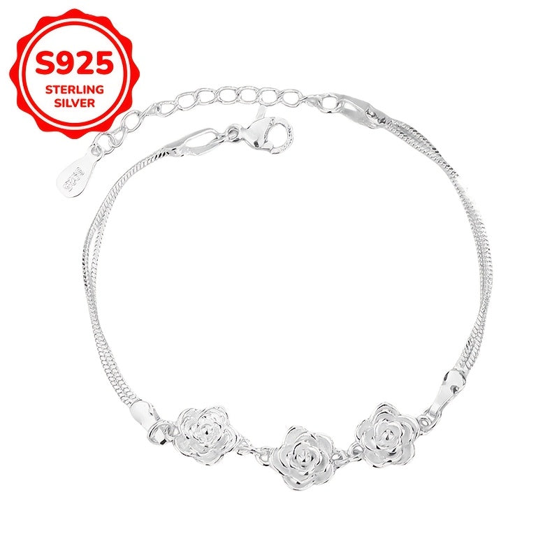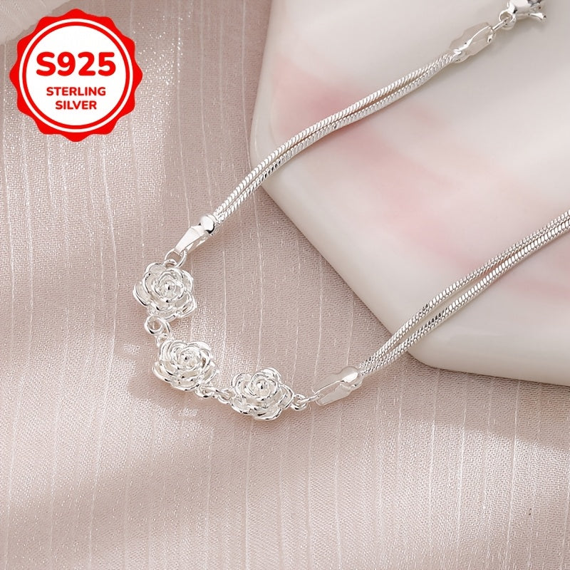 Elegantly crafted women's bracelet with a vintage three-dimensional rose design. This delicate double-layer bracelet weighs 4.6 grams and is made of high-quality 925 silver.