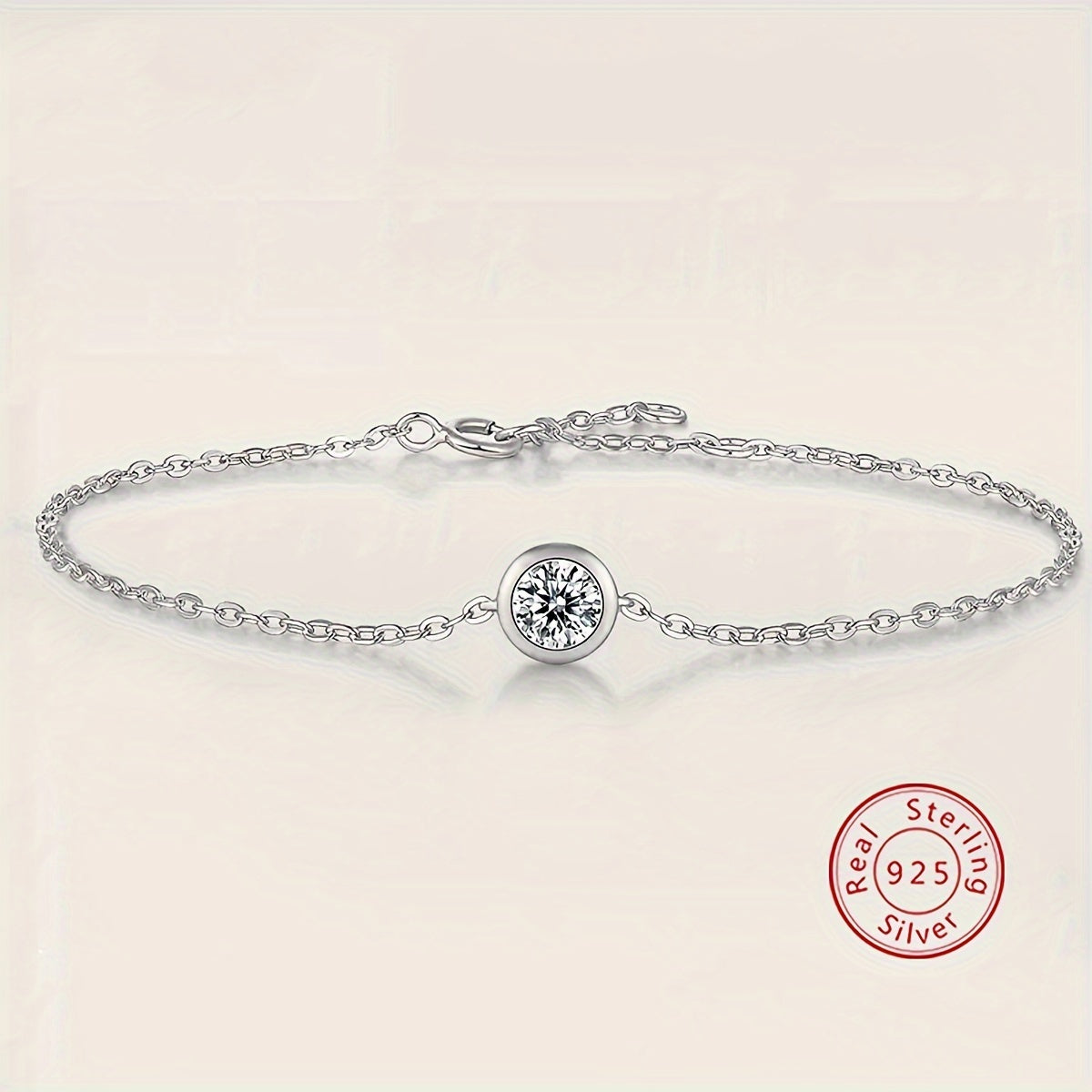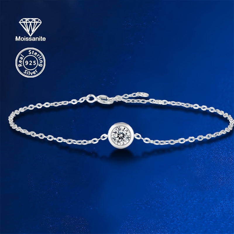 Elegant vintage 925 sterling silver bracelet featuring a 0.5CT moissanite solitaire. A stunning piece for any occasion.