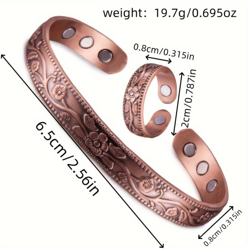 Vintage Boho Jewelry Set: Open Bracelet & Ring Combo