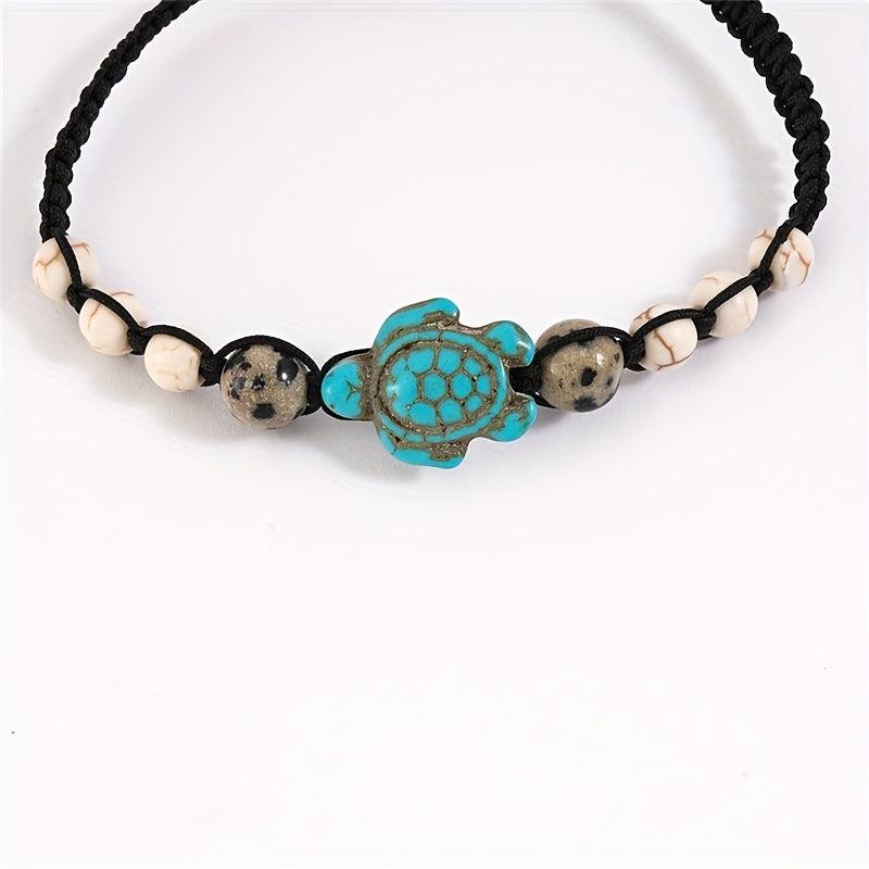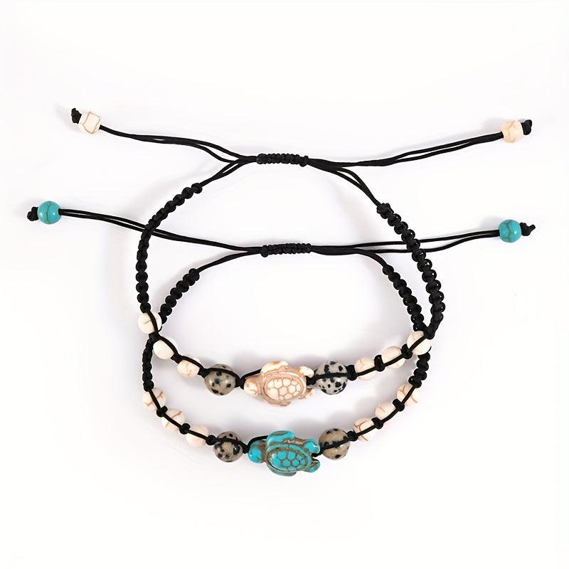 Hand-woven adjustable rope bracelets with bohemian style turtle charm. Perfect for adding a touch of vintage boho to your outfit.