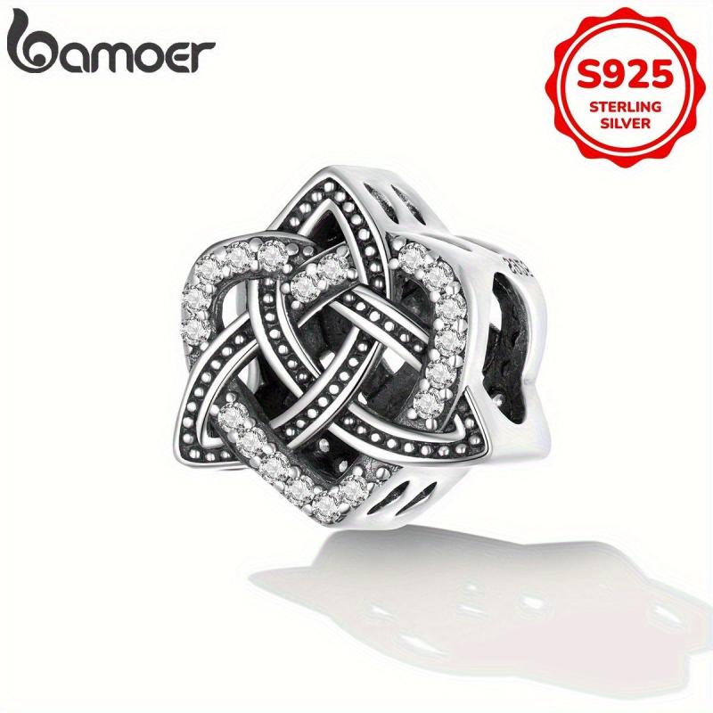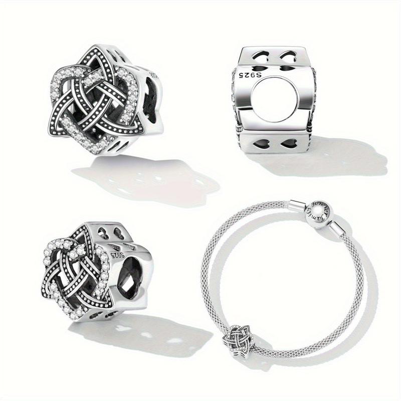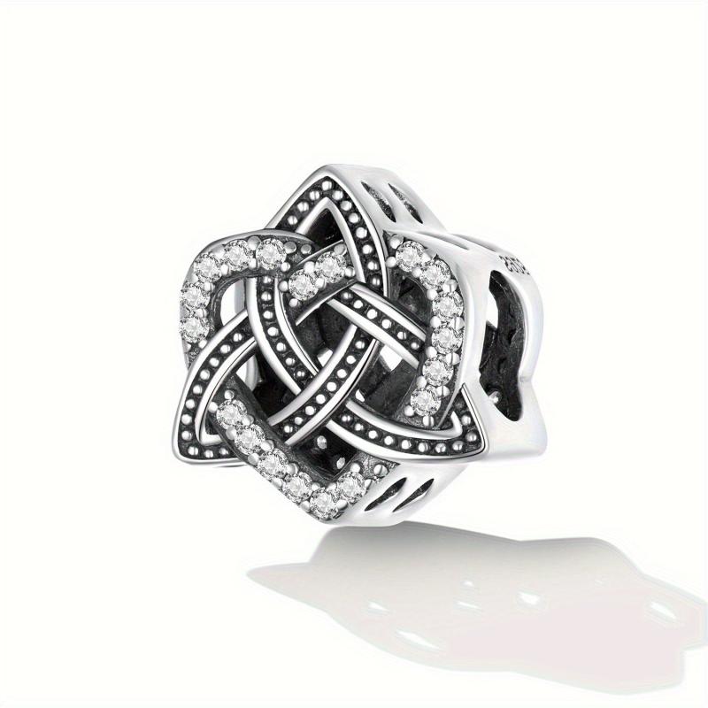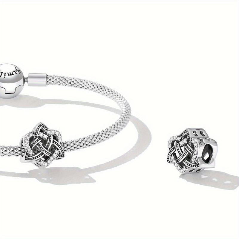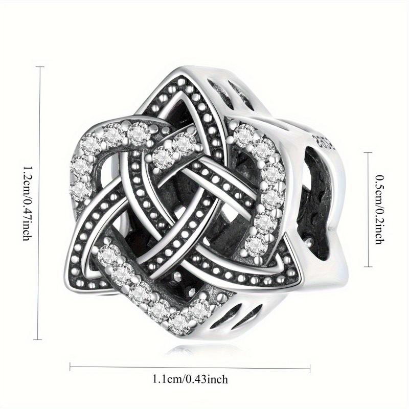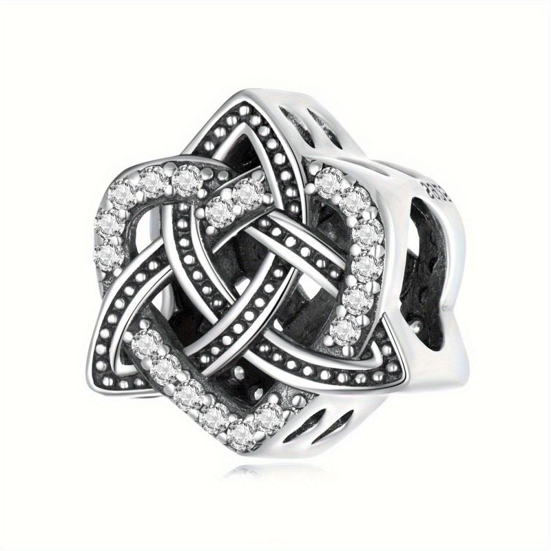 This beads jewelry making supply features a vintage ethnic style with Celtic knot design, suitable for DIY bracelets. Made of 925 silver and inlaid with synthetic zirconia.