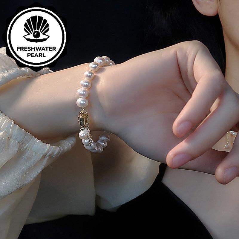Elegant vintage-inspired freshwater pearl bracelet with irregular geometric design. Perfect for weddings and versatile for all seasons.