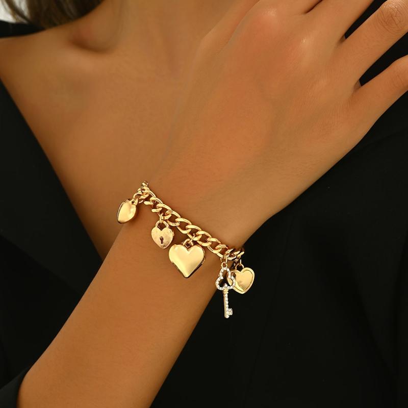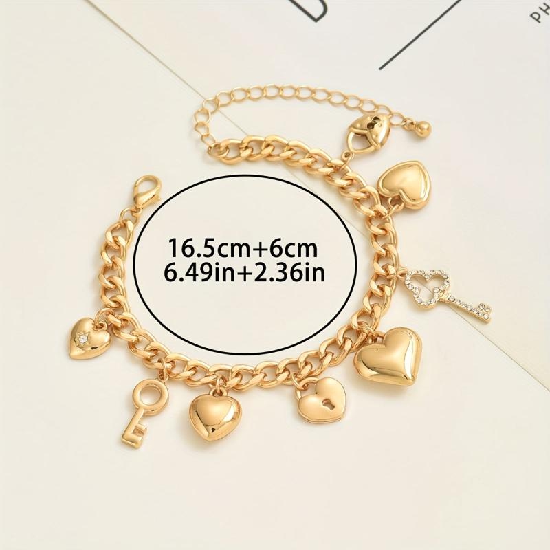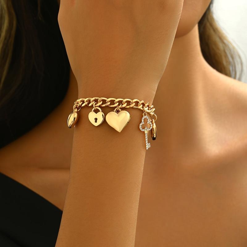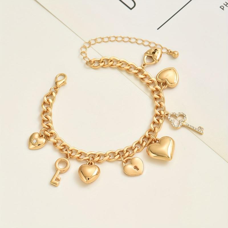 Elegant and timeless heart-shaped lock and key pendant bracelet that is perfect for Valentine's Day and everyday wear.