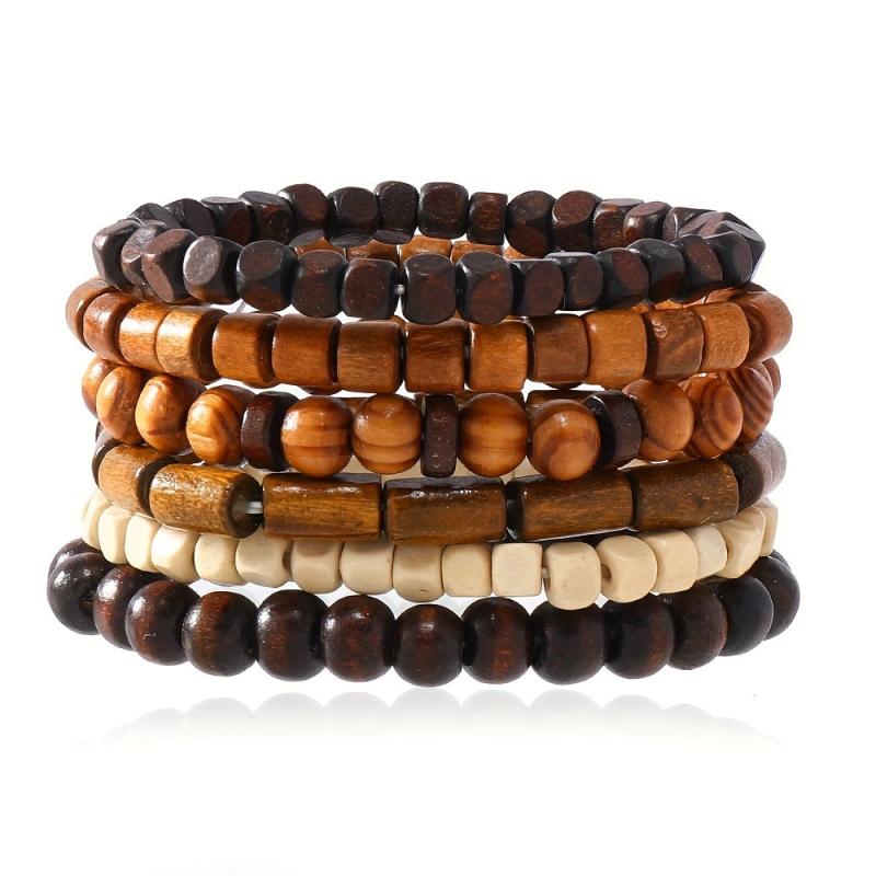 Add a touch of vintage charm to your casual attire with this stretch bracelet featuring wooden beads and coconut shell accents. Makes a great gift too!