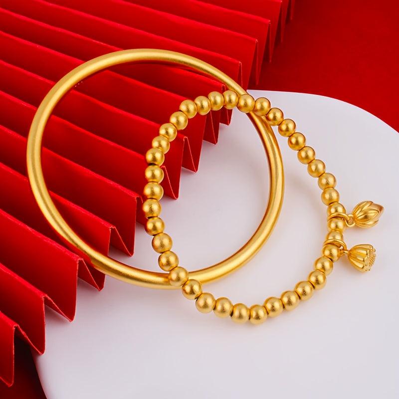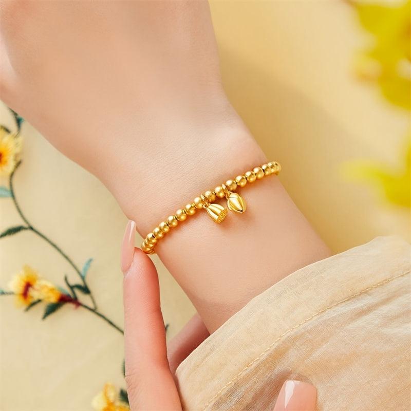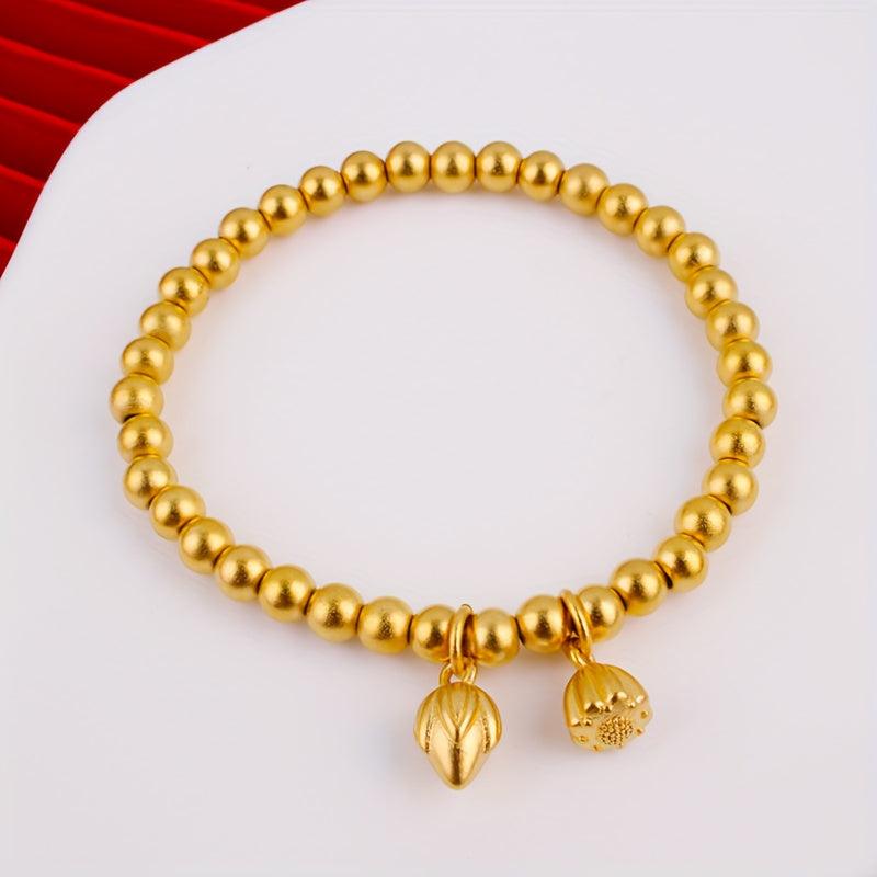 This vintage bracelet features a beautiful golden lotus crown design with a mix of beaded and smooth bands. It showcases a synthetic April birthstone for added charm.