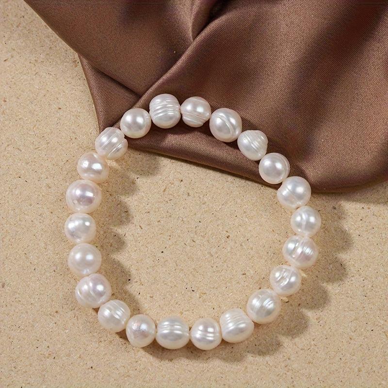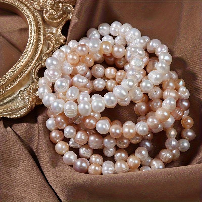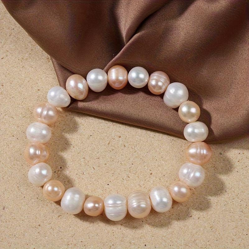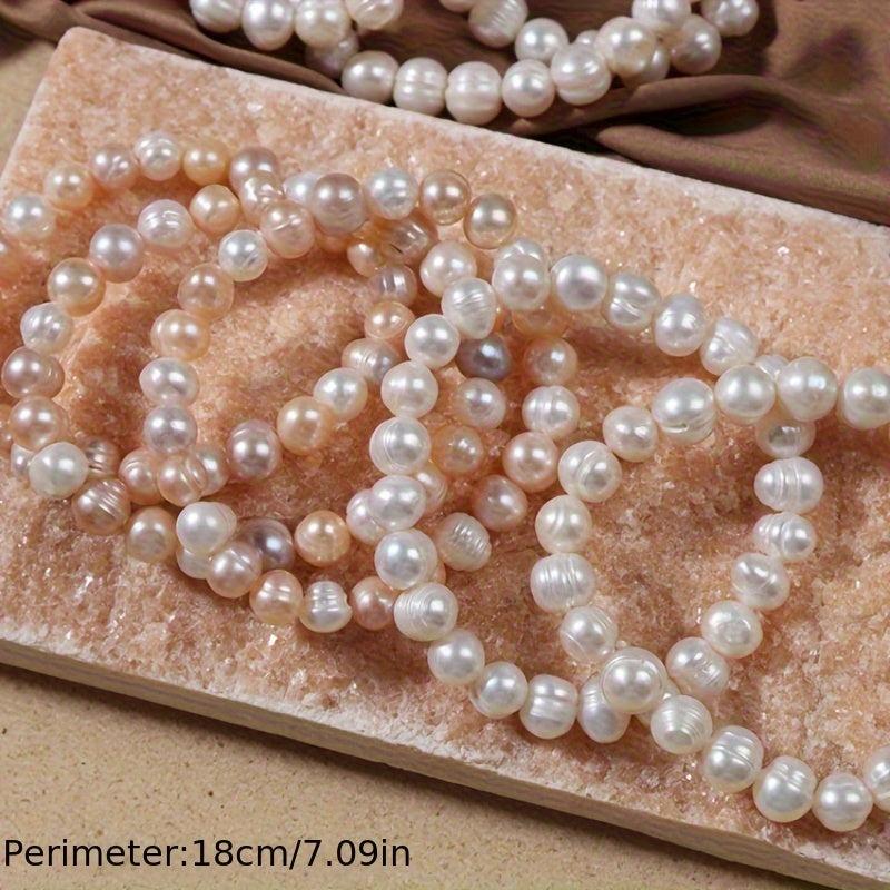 Enhance your outfit with this vintage-inspired bracelet featuring natural freshwater pearls in soft pink hues. The high elasticity stretch design ensures a comfortable fit.
