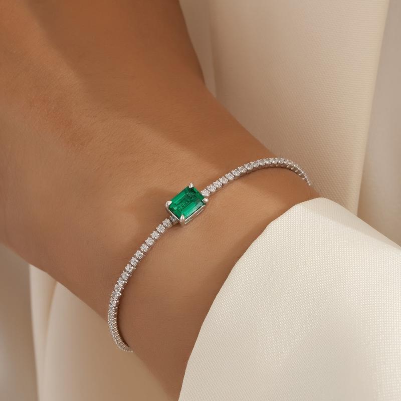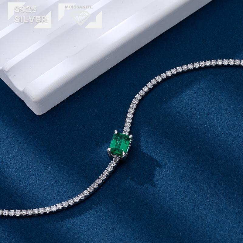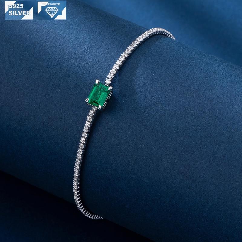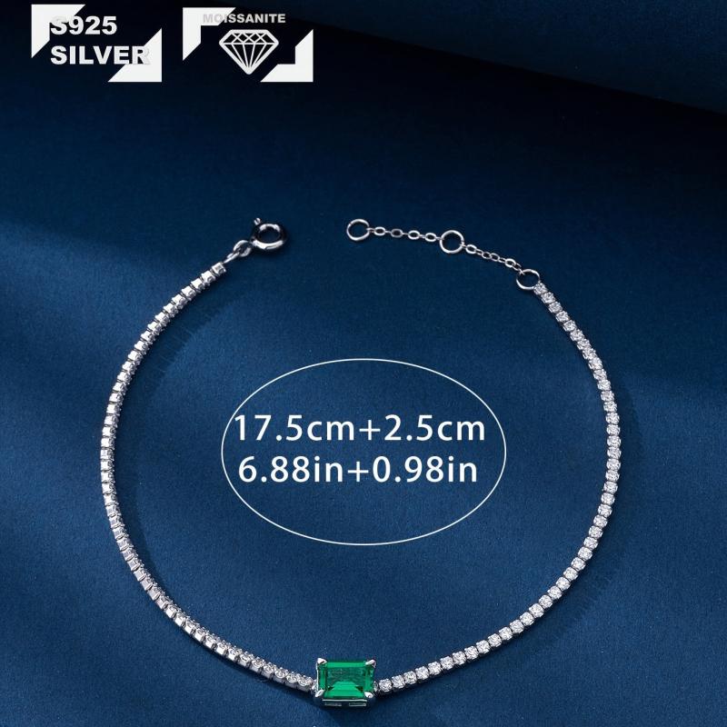 This exquisite bracelet features a total of 5 7mm artificial gemstones along with a stunning moissanite. Made of S925 silver, it weighs 3.2g and boasts intricate embroidery details.