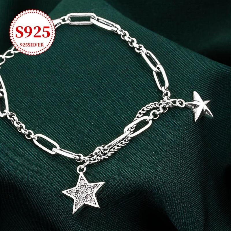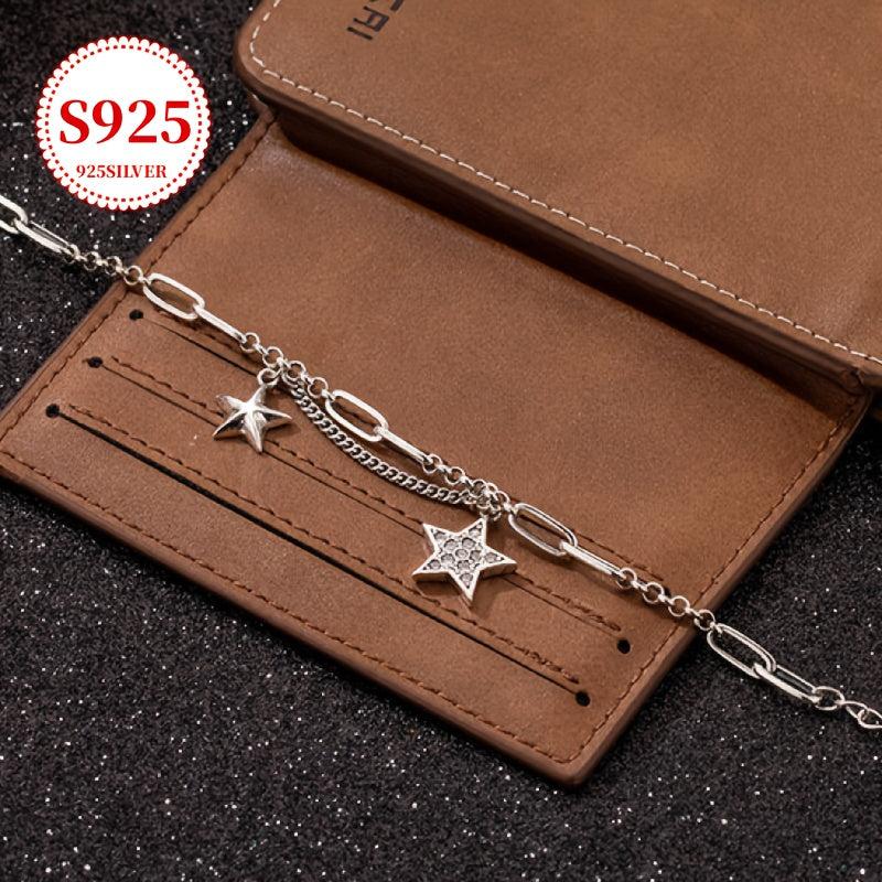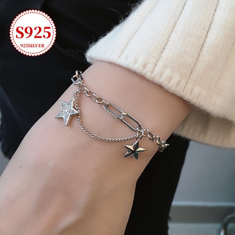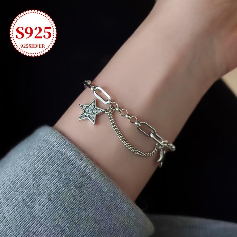 This bracelet features a unique design with spliced chain and double layered five pointed star. It adds a touch of vintage charm to your look.
