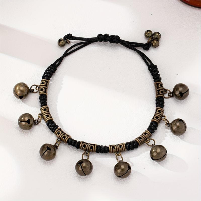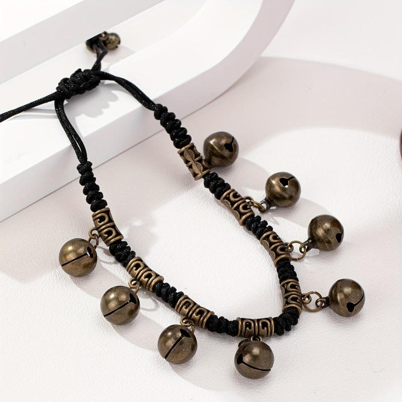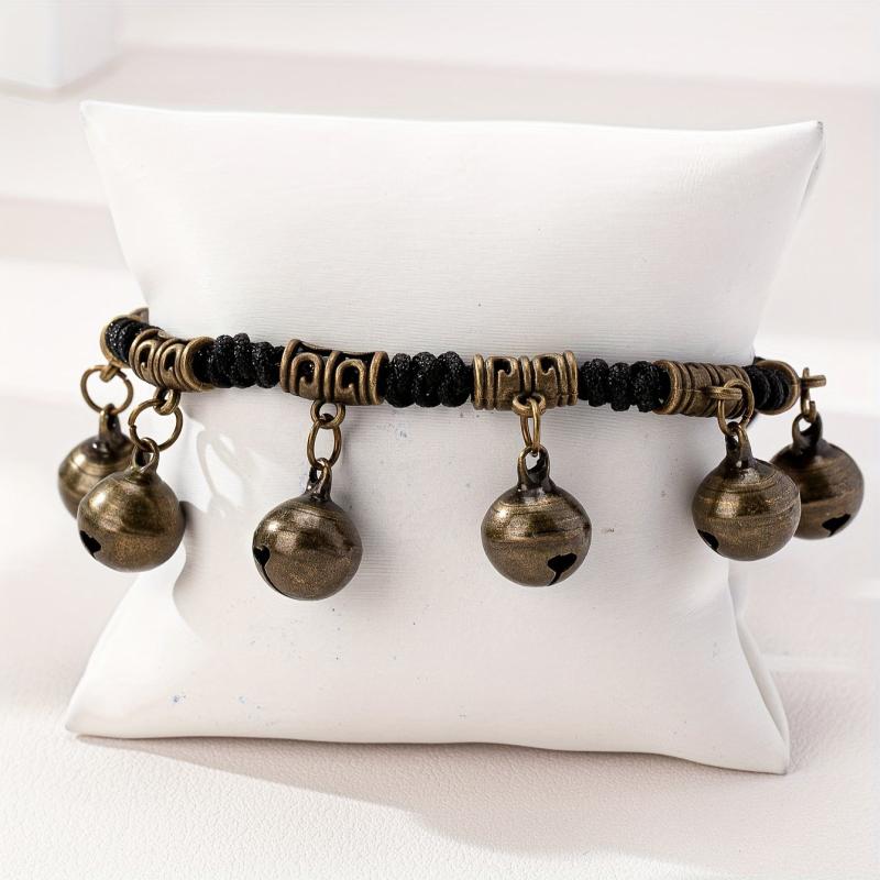 Vintage Style Alloy Bangle with Jingle Bells Handcrafted Bracelet