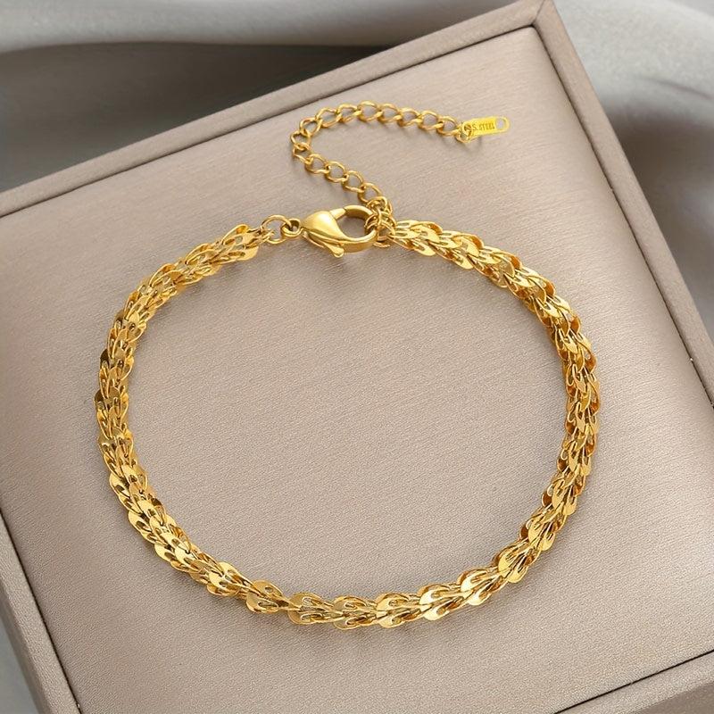 This stainless steel link chain bracelet features a vintage style resin inlay design that is perfect for everyday wear or special occasions. Add a touch of elegance to your outfit with this unique piece.