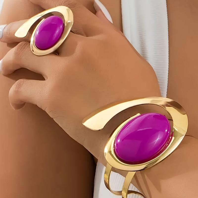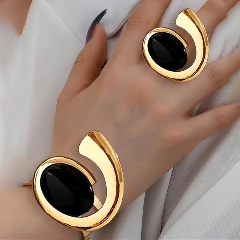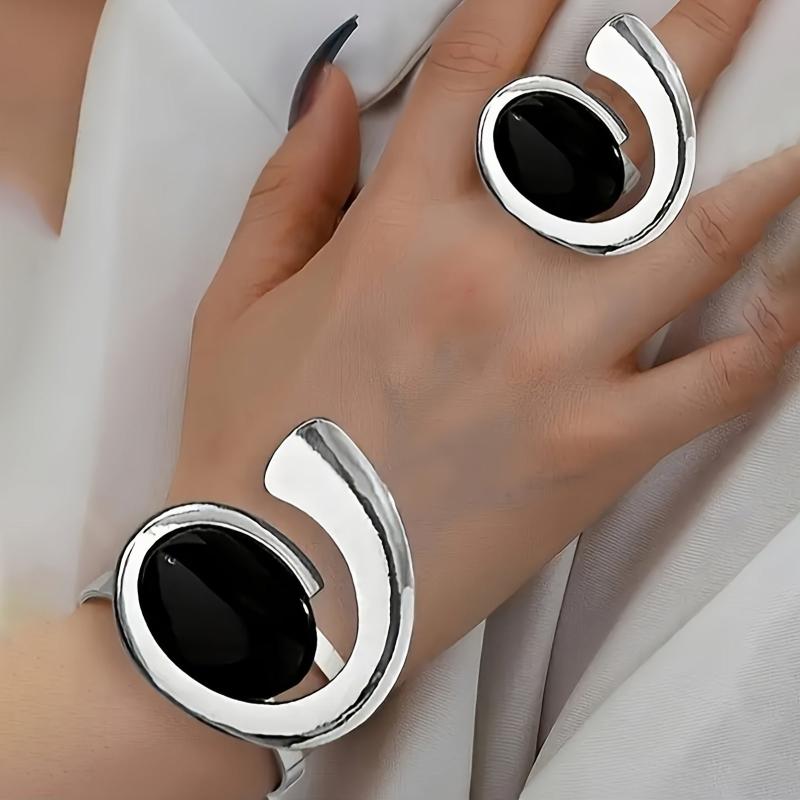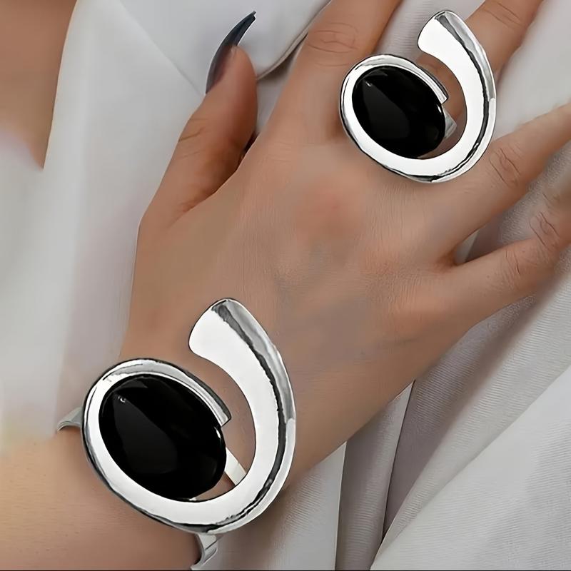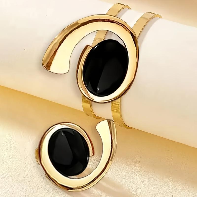 This stylish jewelry set includes a spiral bracelet and ring made of alloy with faux pearl inlay. It is perfect for daily wear or special occasions, making it a great holiday gift.