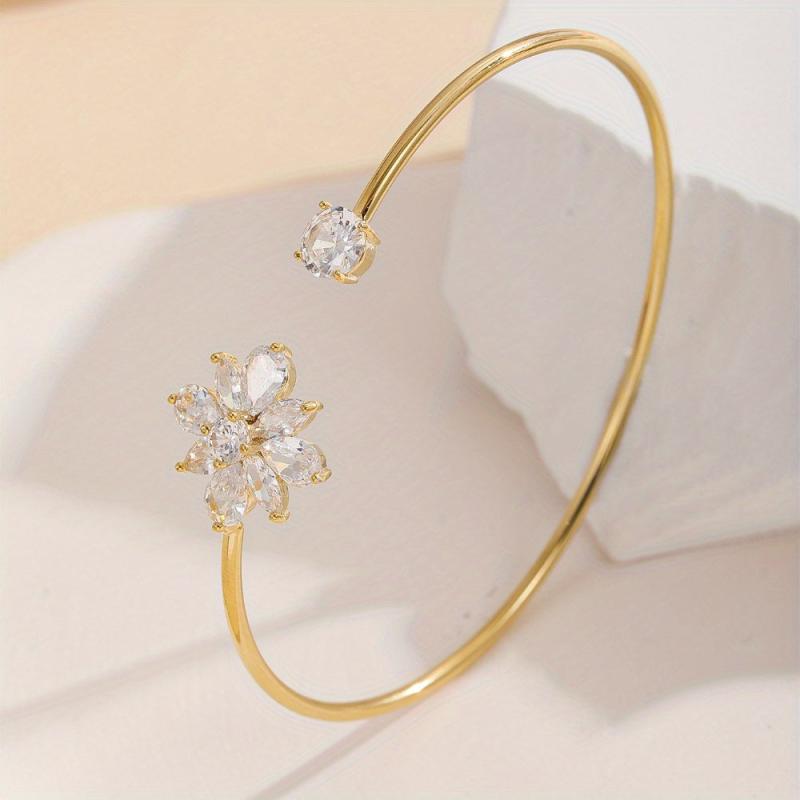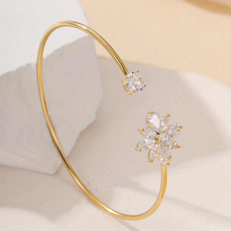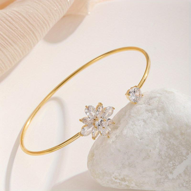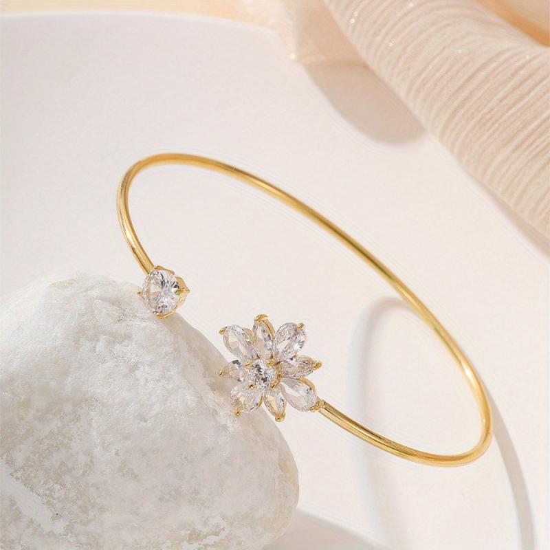 Elevate your daily look with this 18K gold plated bangle featuring sparkling zirconia stones. This bangle exudes a vintage charm and is perfect for everyday wear. Ideal for those born in August.
