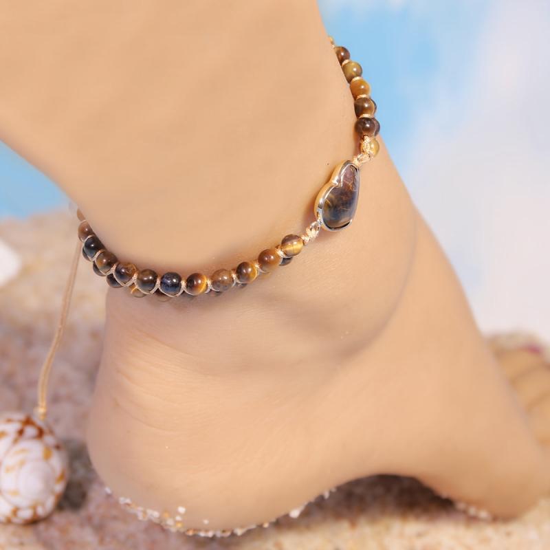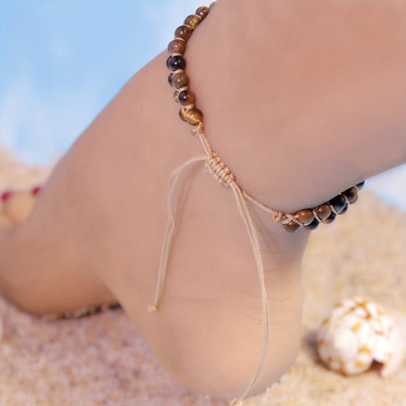 Enhance your summer look with this beautiful anklet featuring natural Tiger's Eye stones. Perfect for beach vacations and daily wear.