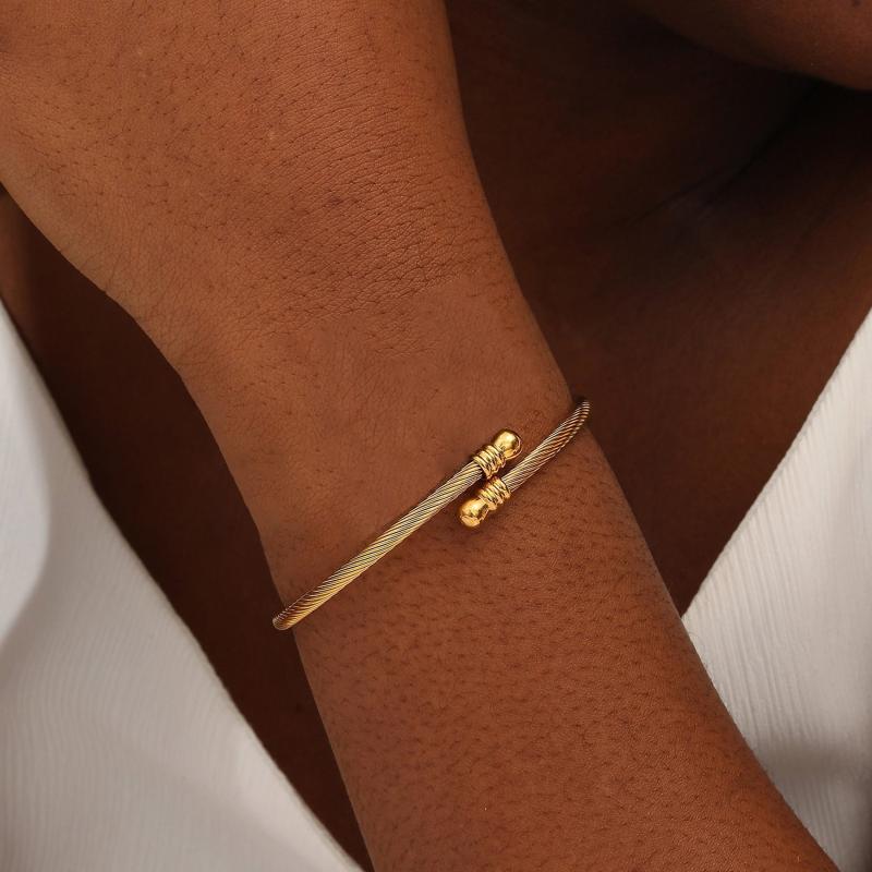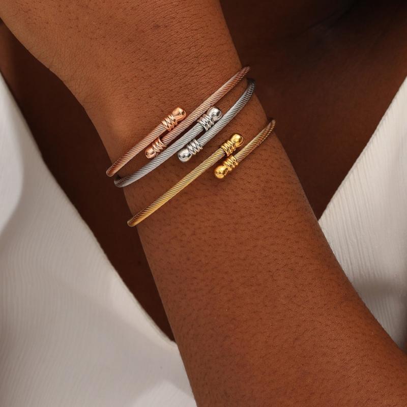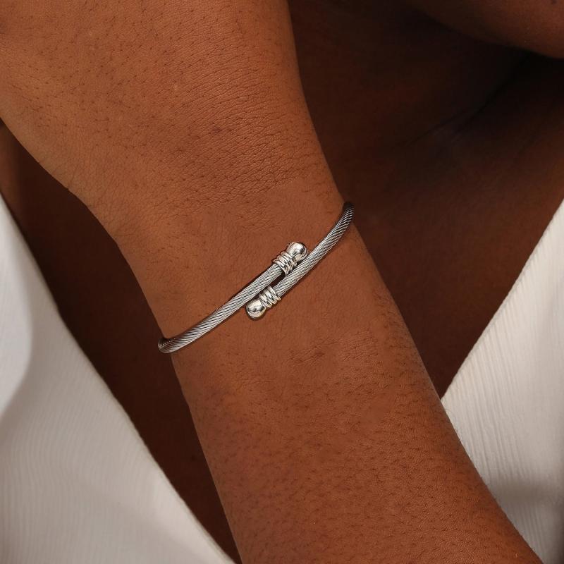 This vintage-style bracelet is perfect for daily wear or vacations. Made of hypoallergenic titanium steel with natural stones, it is a stylish and durable accessory. The twisted design adds a touch of elegance to any outfit.