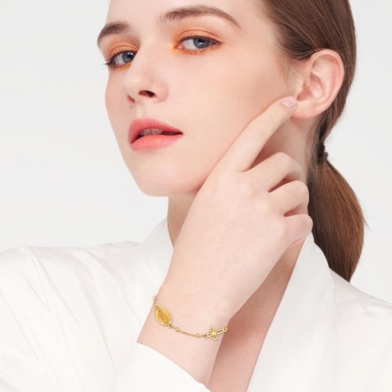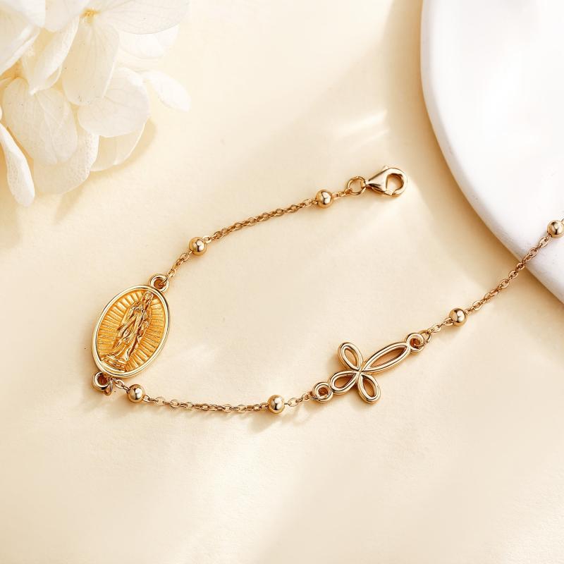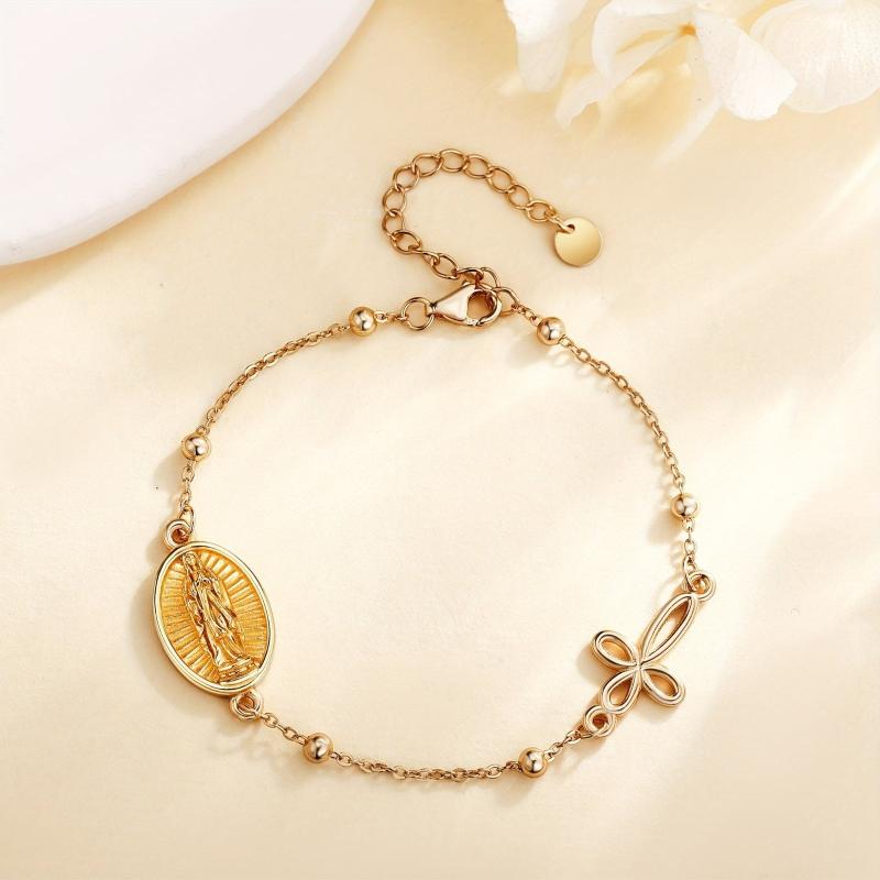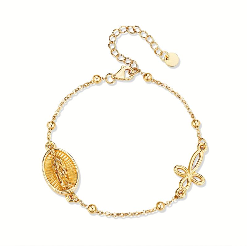 Beautiful S925 sterling silver bracelet featuring Virgin Mary and cross links. Ideal for First Communion, and a perfect piece of Catholic jewelry for women.