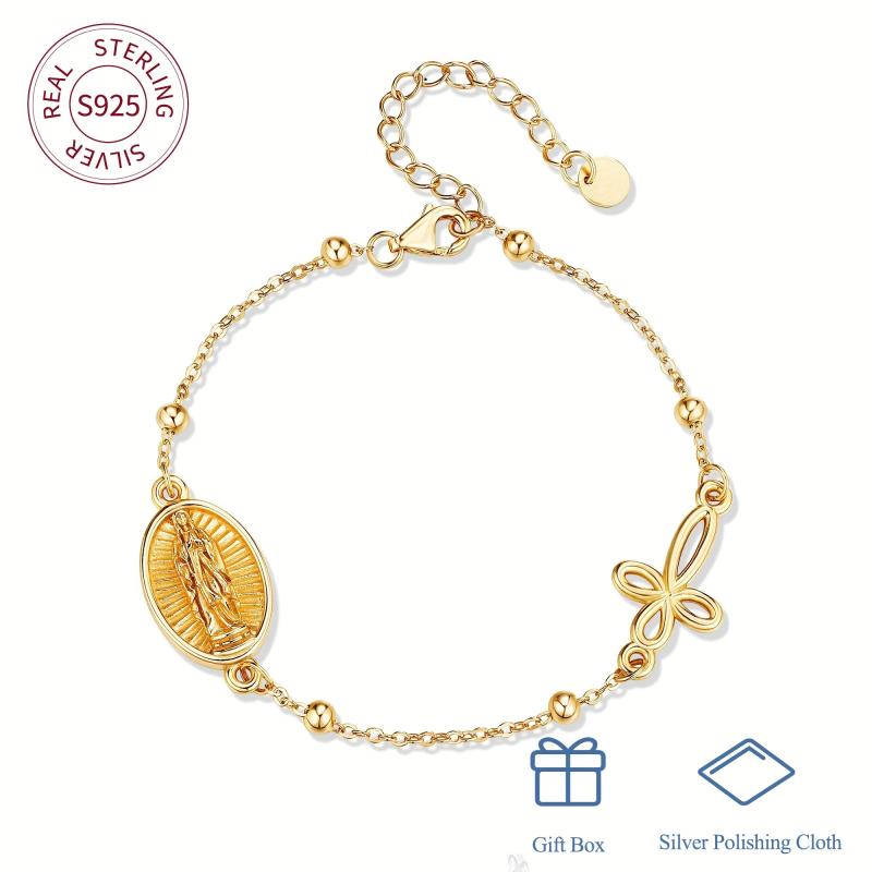 Virgin Mary Bracelet S925 Sterling Silver Cross Link Bracelets