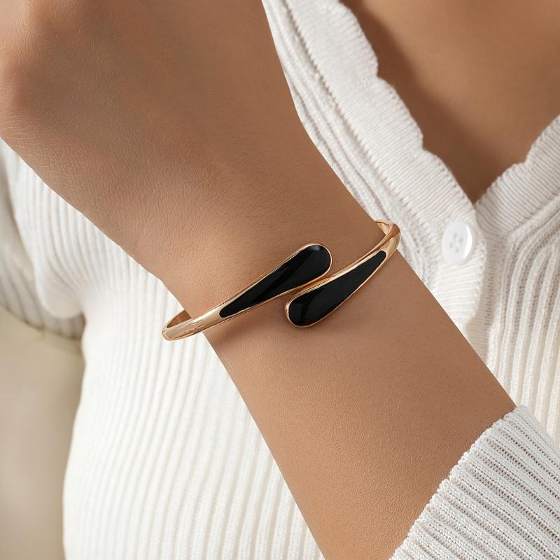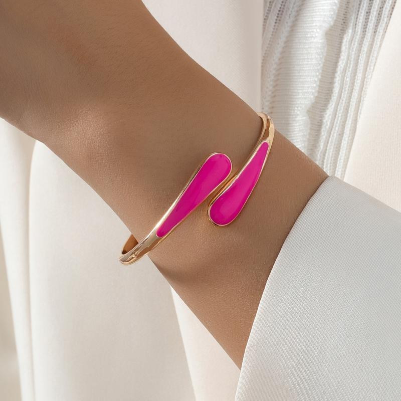 This stylish bangle bracelet is perfect for daily wear, featuring enchanting enamel glaze colors in a water drop design.