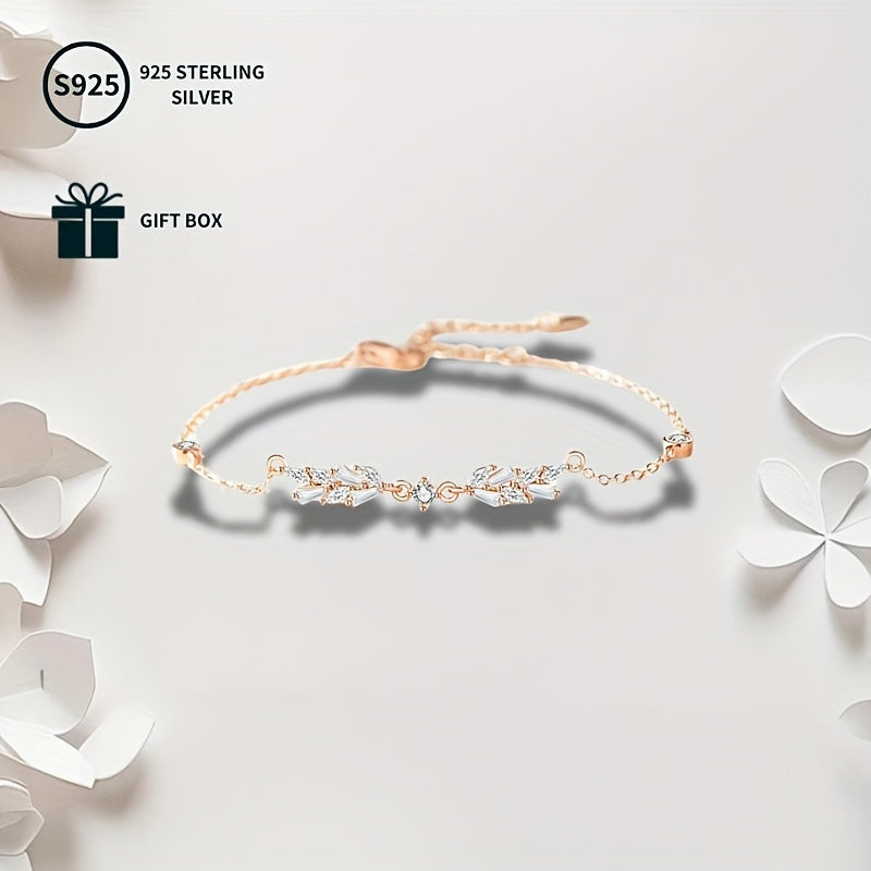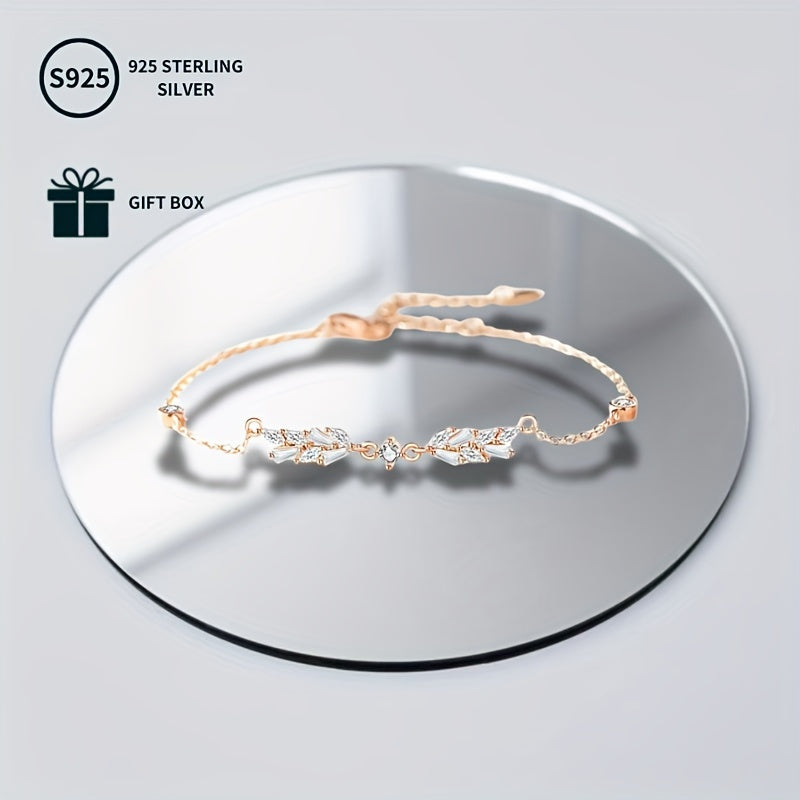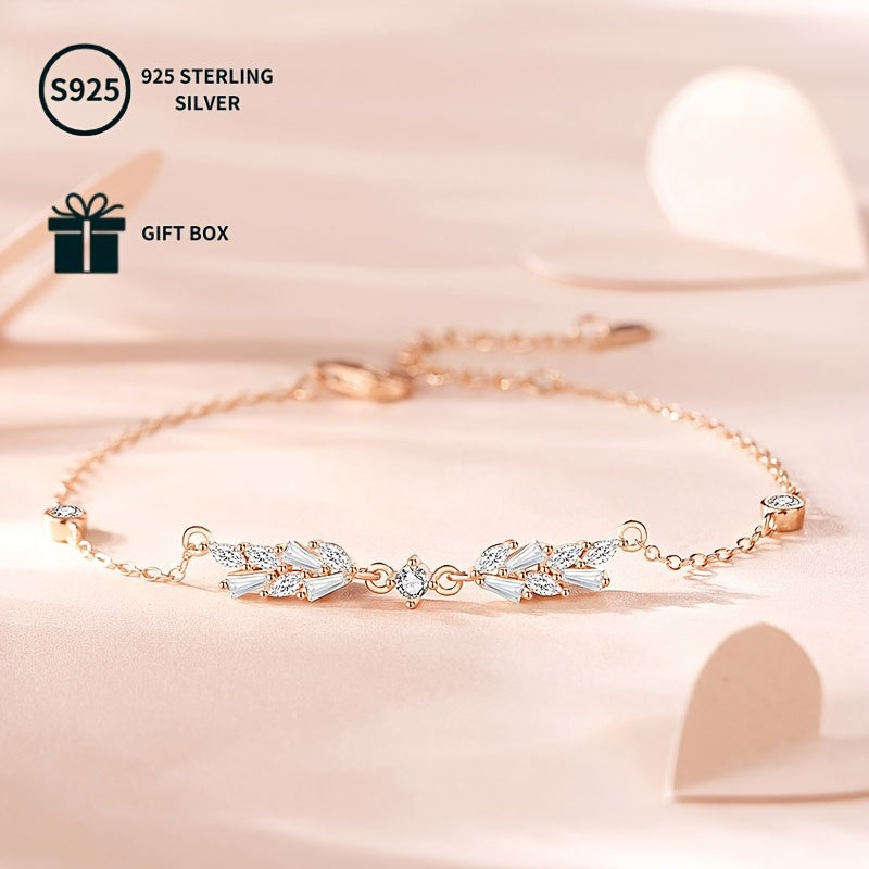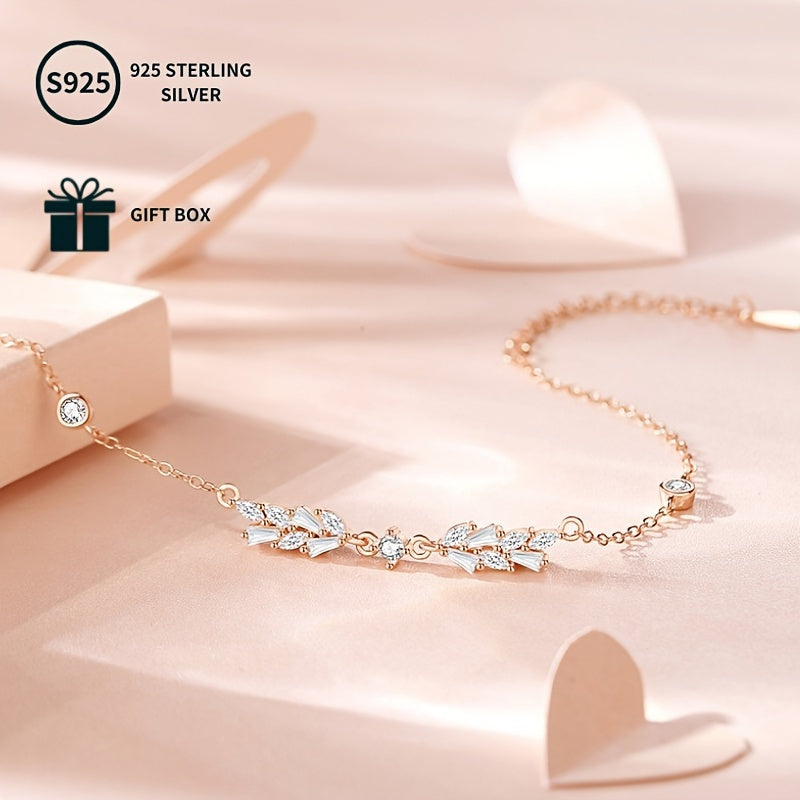 This elegant bracelet features a rose golden wheat ear design with sparkling cubic zirconia stones. Made of high-quality 925 sterling silver, it's perfect for daily wear or special occasions.