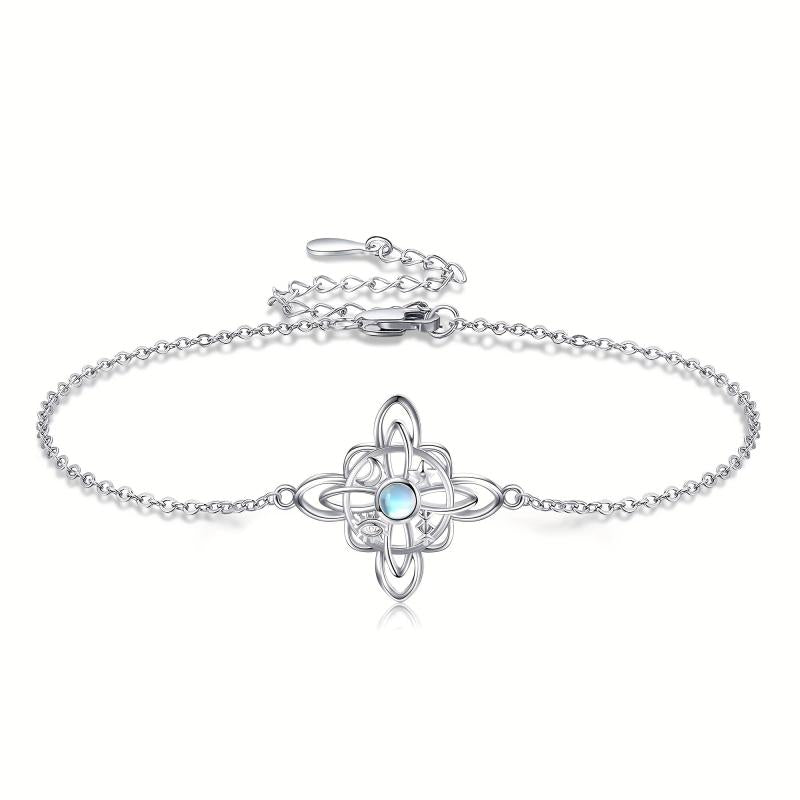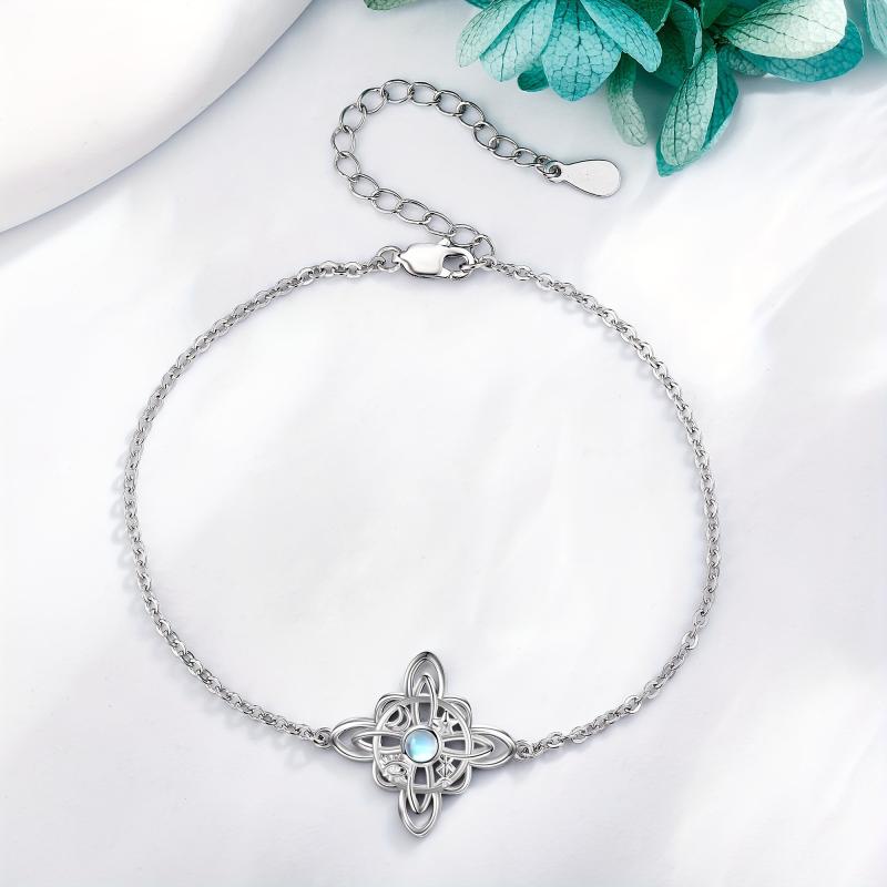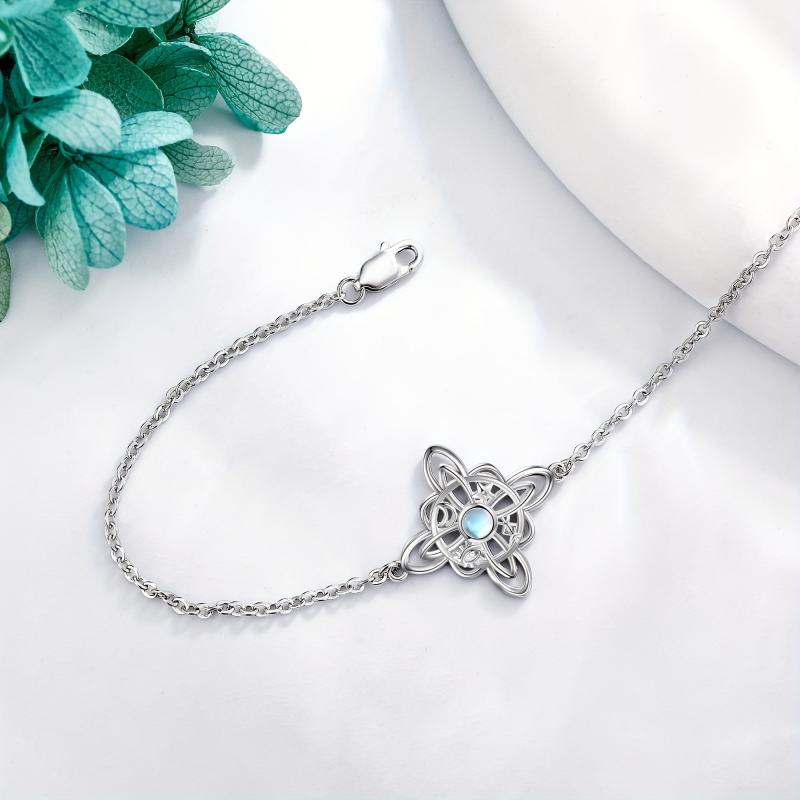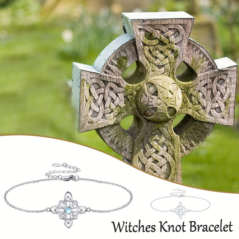 This stunning Witch Knot Bracelet is made of 925 sterling silver and features a beautiful moonstone. Perfect for any witch or Celtic jewelry lover. Makes a great gift for ladies.