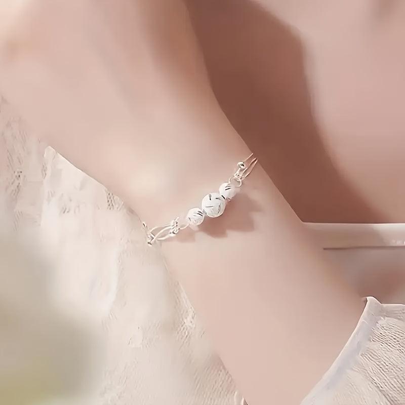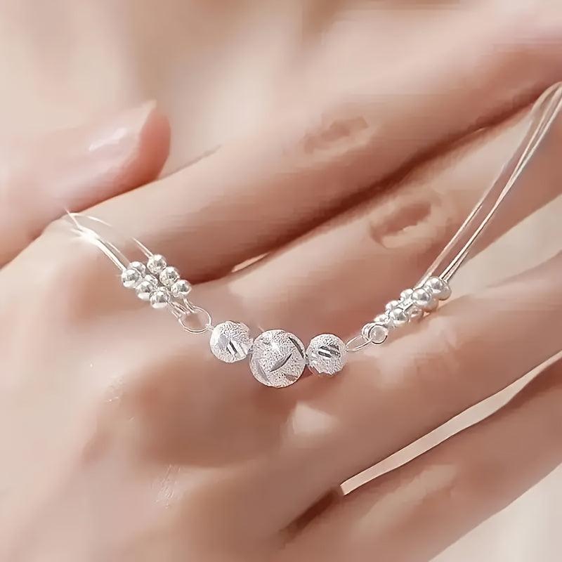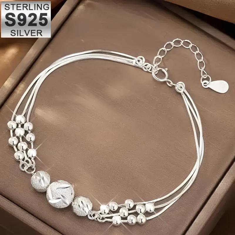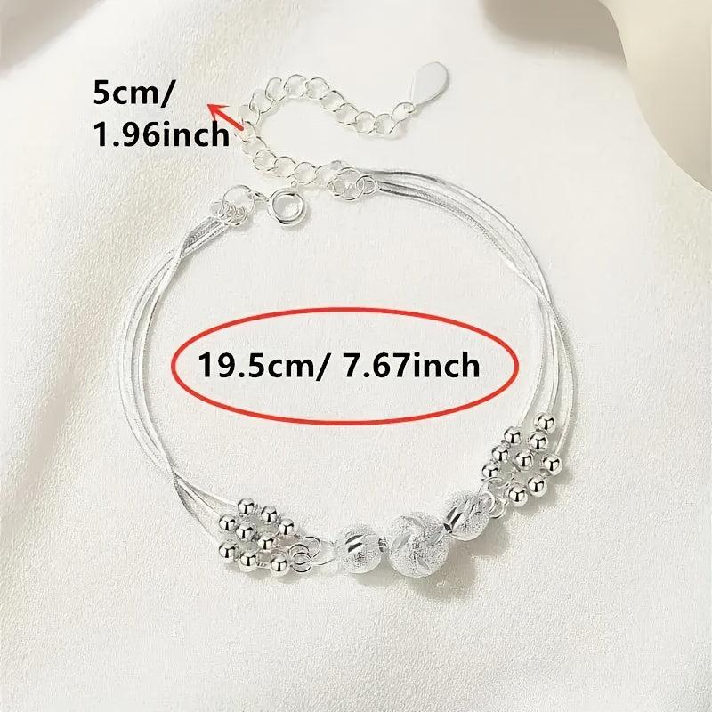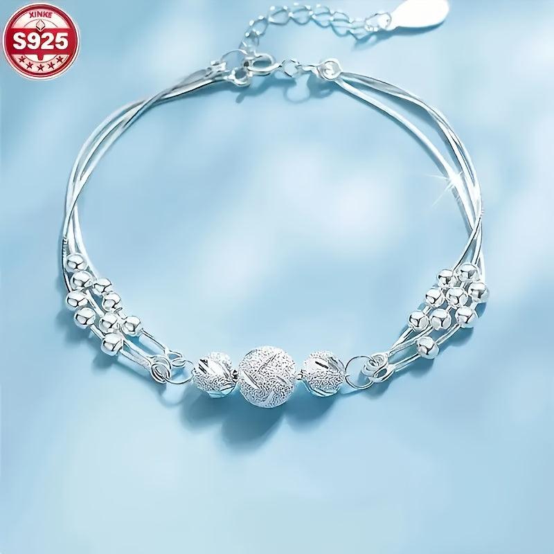 This stunning bracelet is made of 925 sterling silver and features lucky beads. It is adjustable and suitable for weddings or everyday wear.