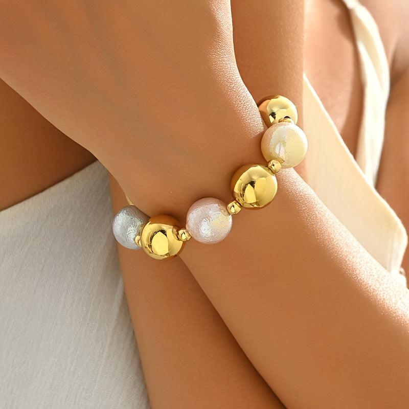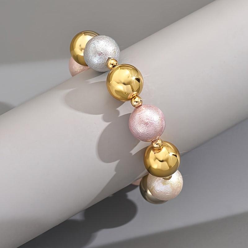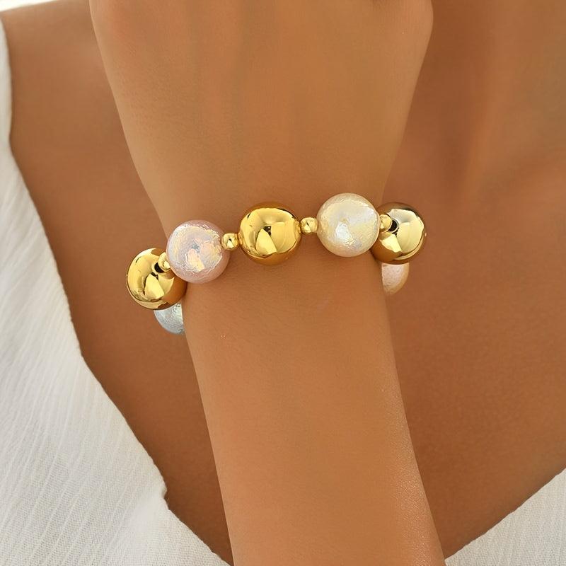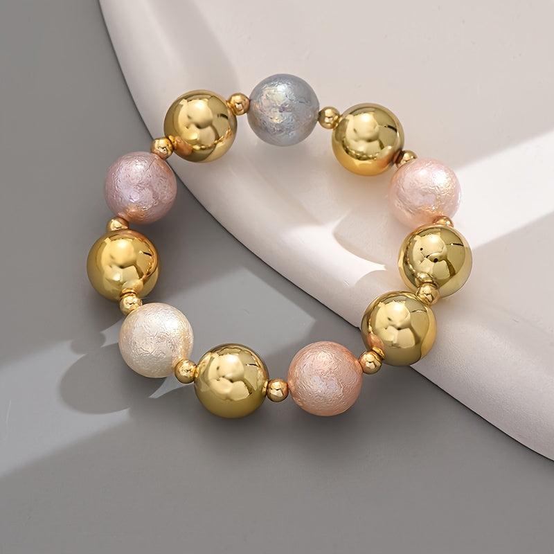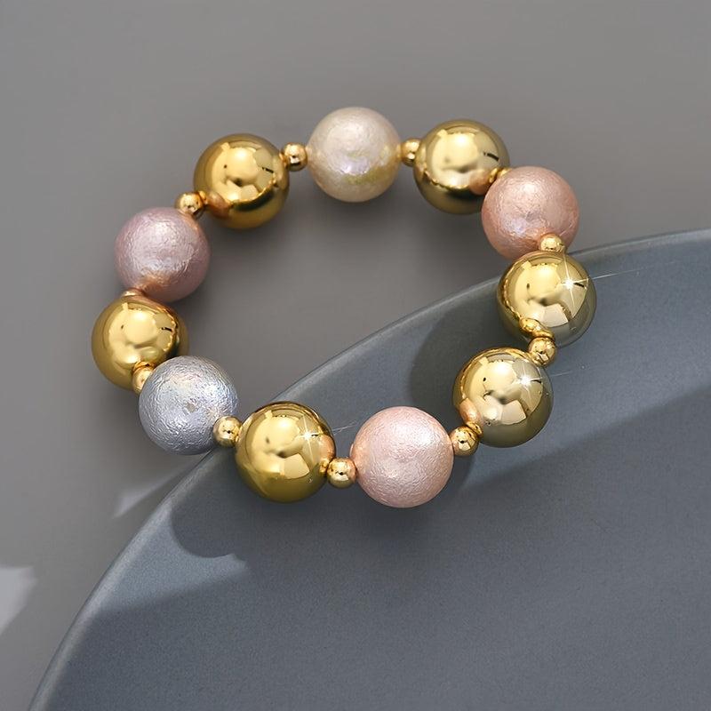 Add a touch of charm to your outfit with this elastic bracelet featuring an array of colorful beads. The perfect accessory for any casual or elegant look.