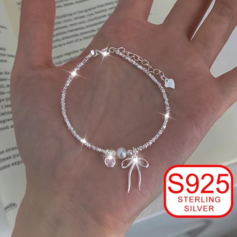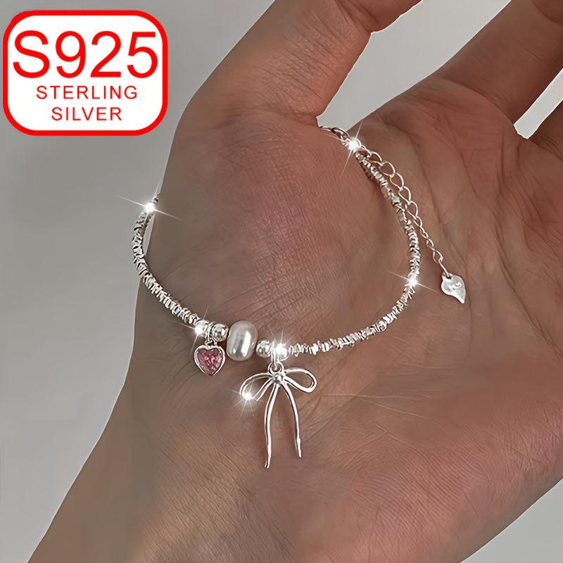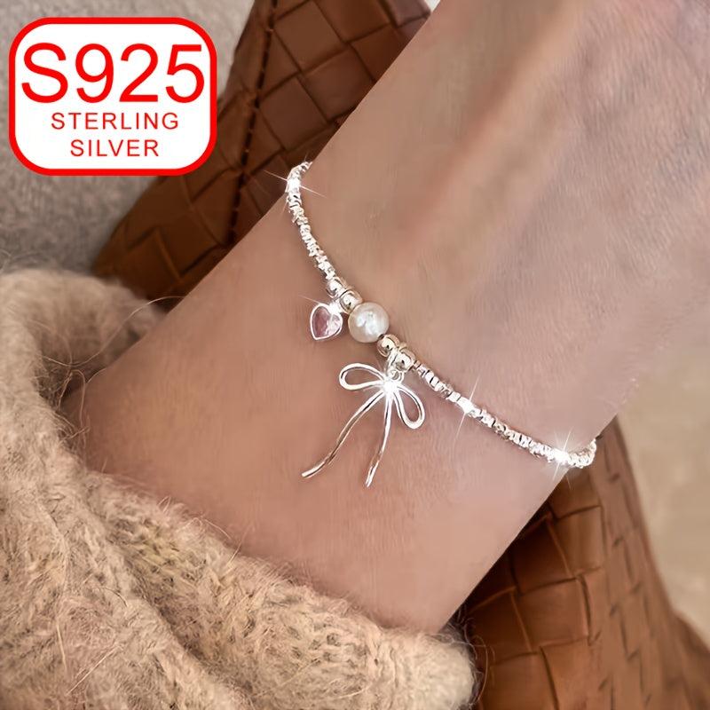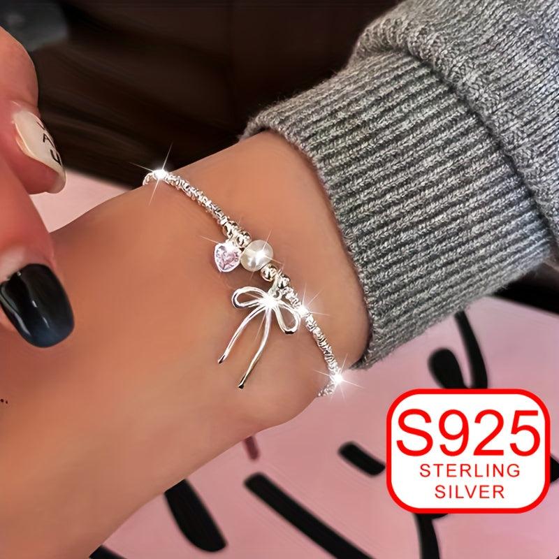 Elegant bracelet with bowknot design and heart-shaped charm, adding a touch of high-end fashion to your outfit.