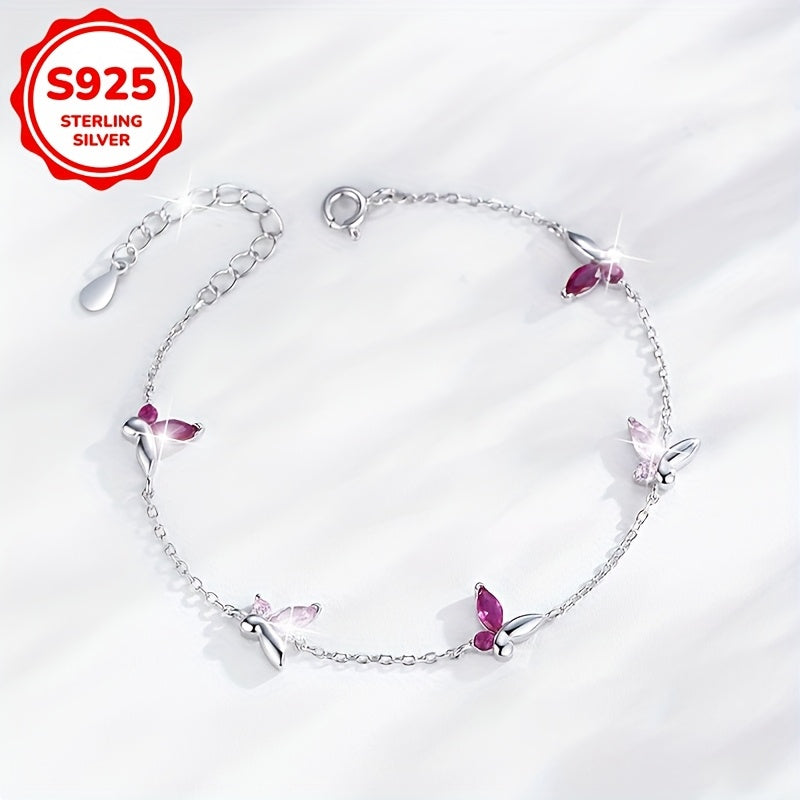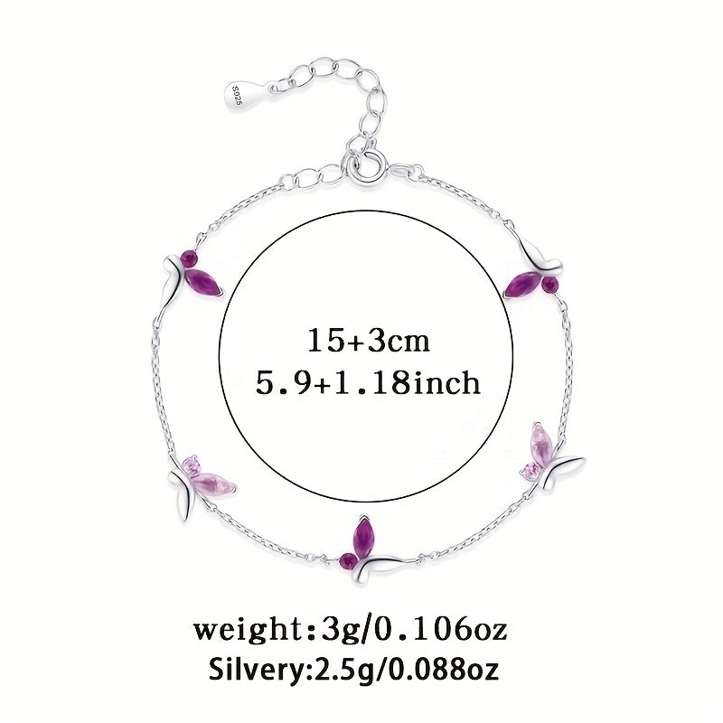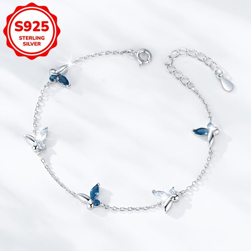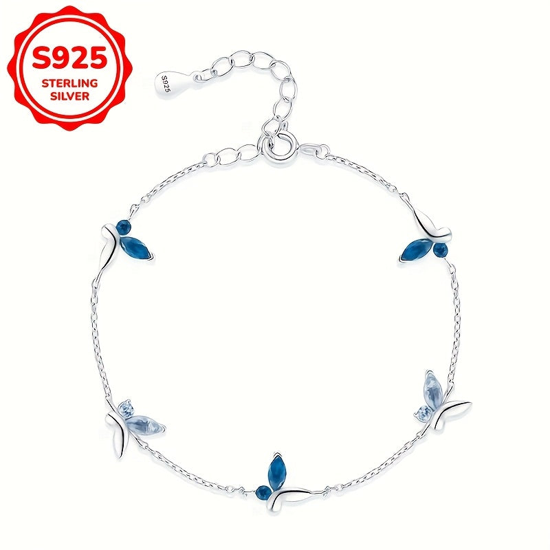 This elegant bracelet features a light half inlaid synthetic zirconia butterfly charm. Made of high-quality 925 silver, it is suitable for daily wear, parties, and gift giving.