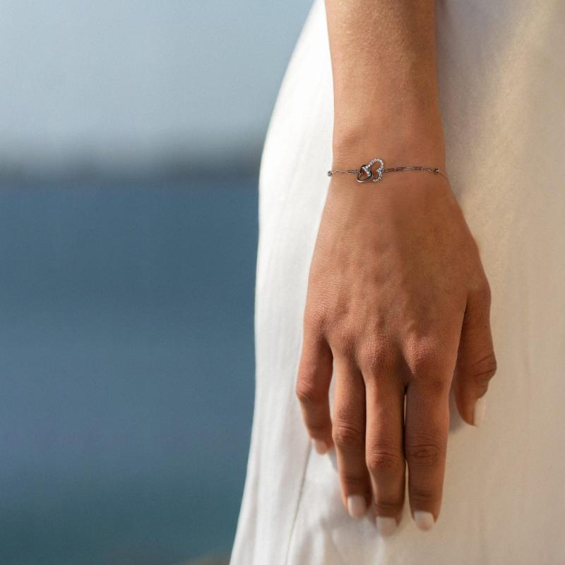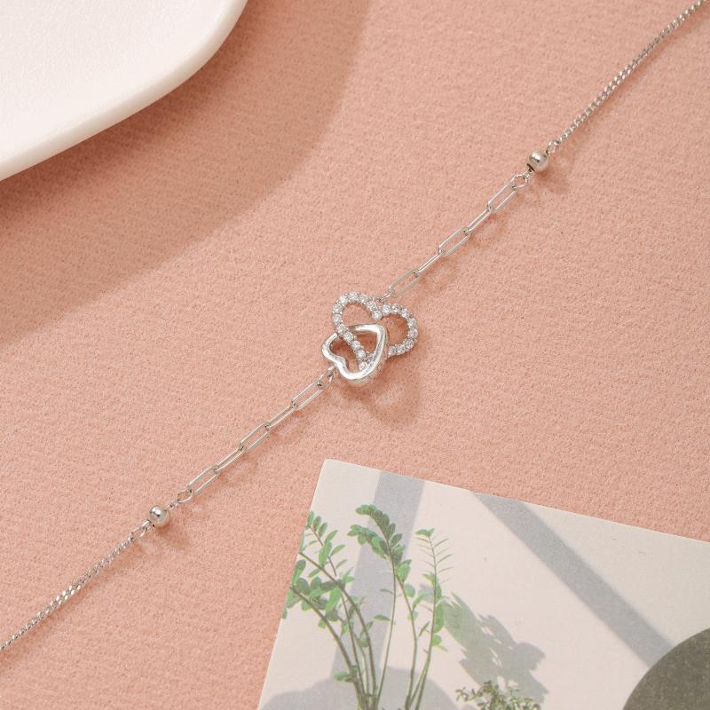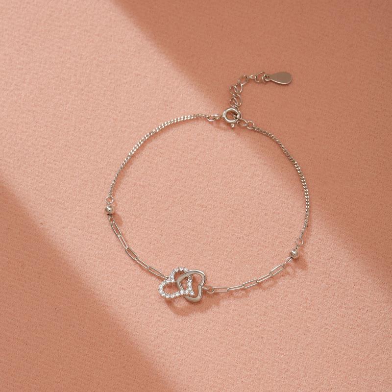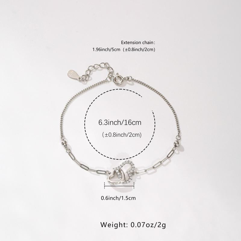 Women's Bracelet with Heart Double Ring Decoration S925 Silver