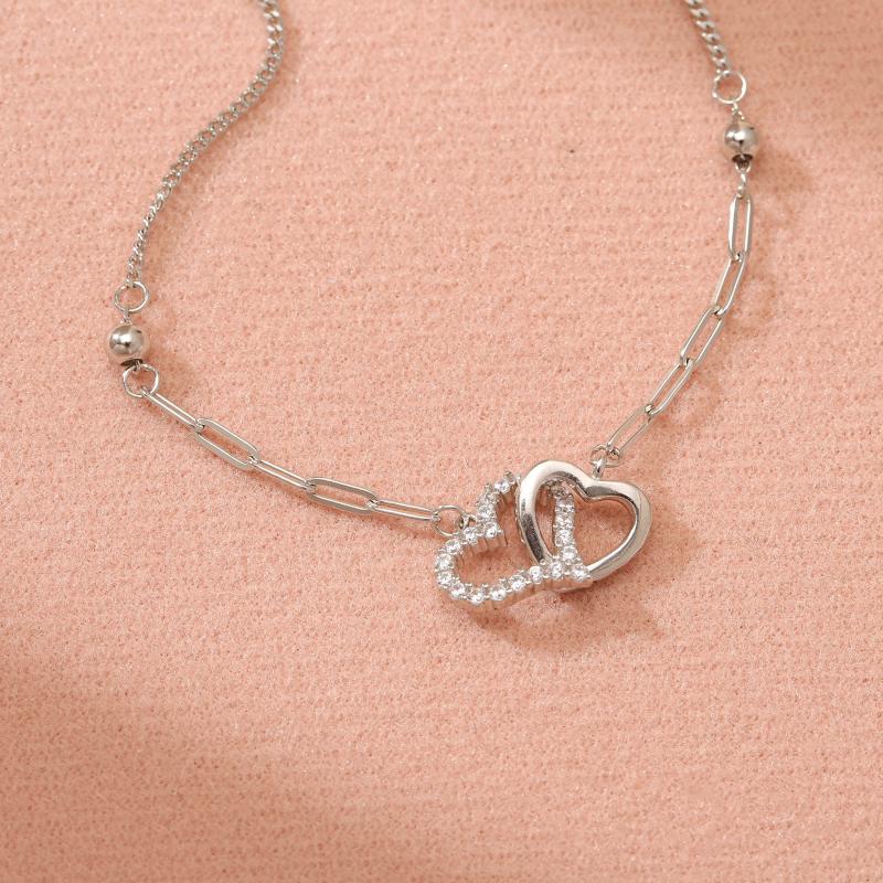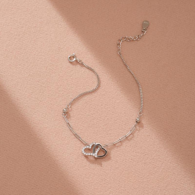This elegant bracelet is made of hypoallergenic S925 silver material, suitable for parties and vacations. It features a double ring decoration with a heart design, adding a touch of charm to any outfit.