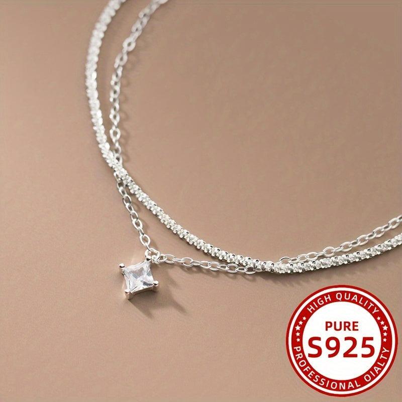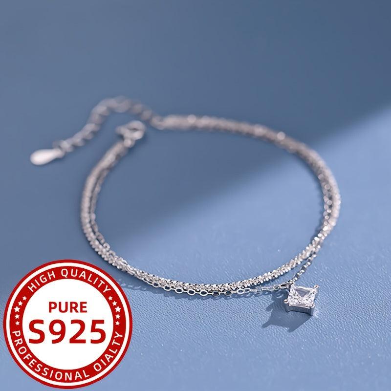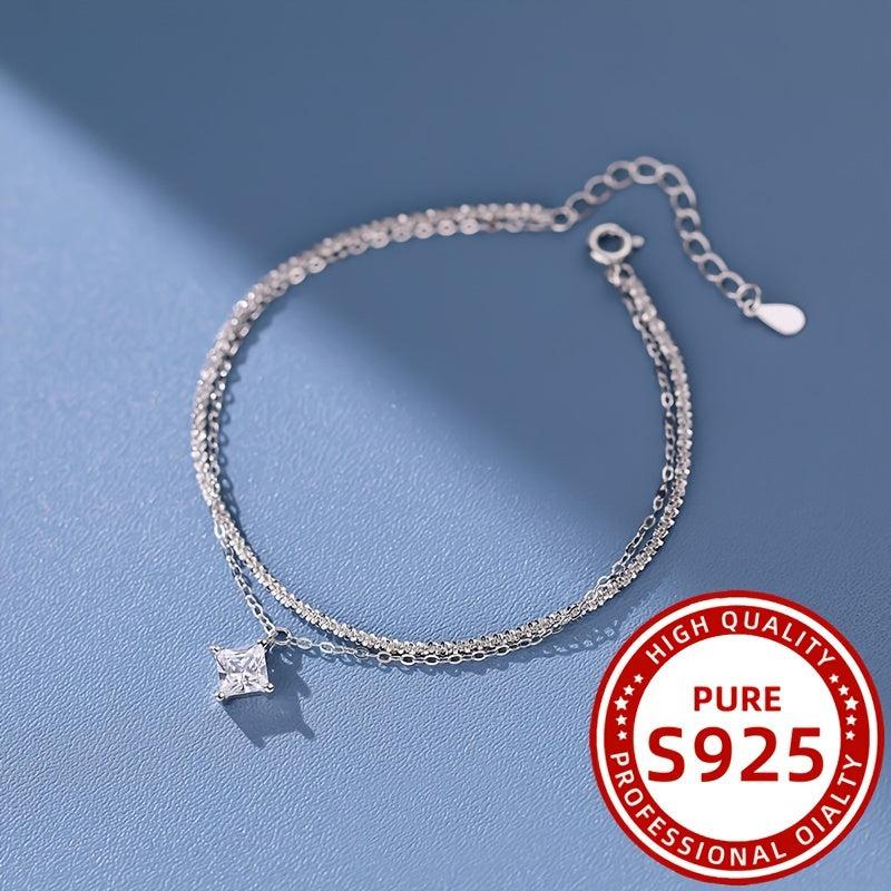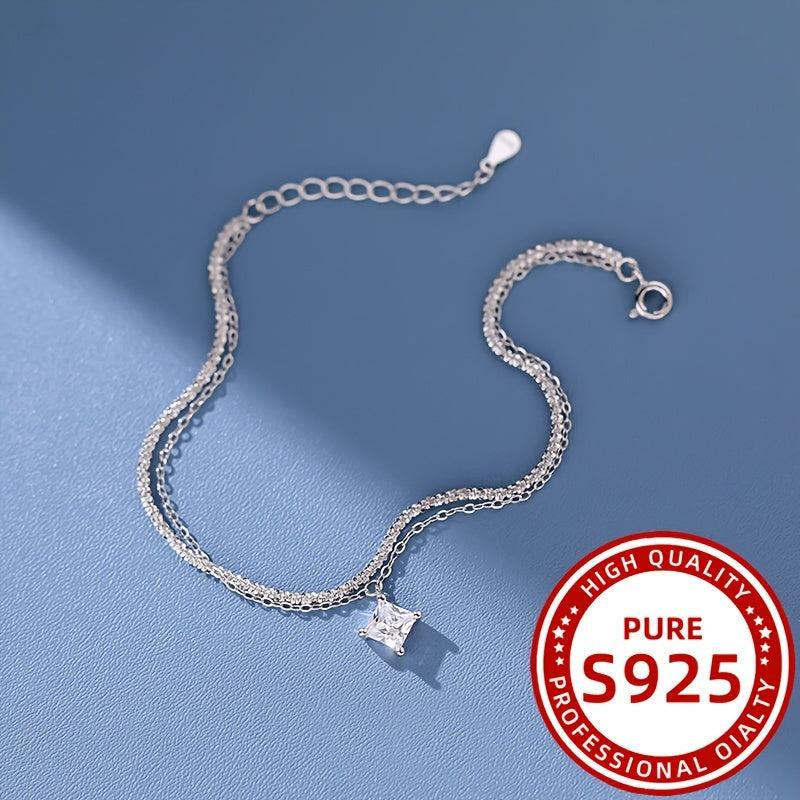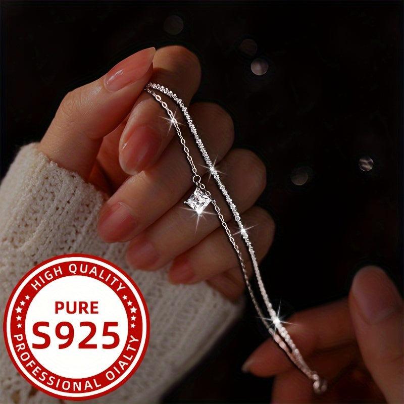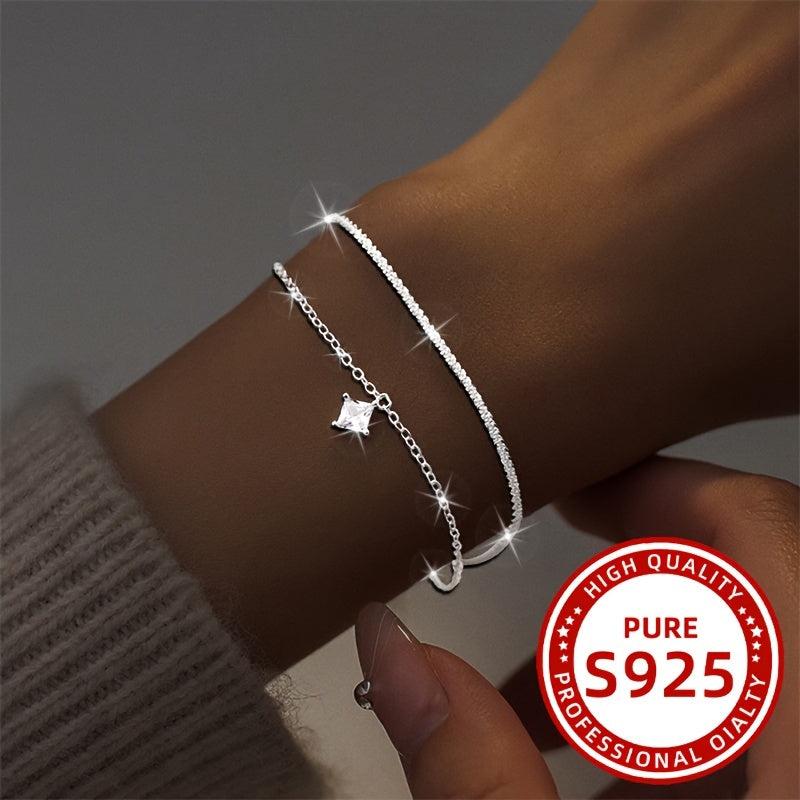 This stunning double layer square bracelet is made of 925 silver and features synthetic zirconium stones. Perfect for daily wear, holidays, gifts, and parties.