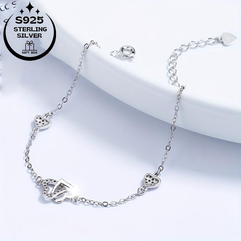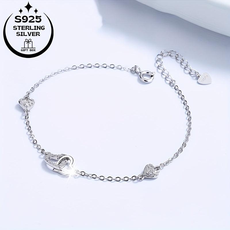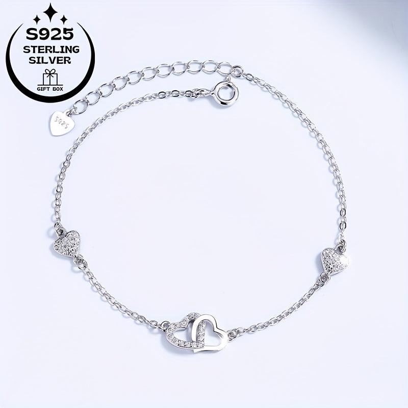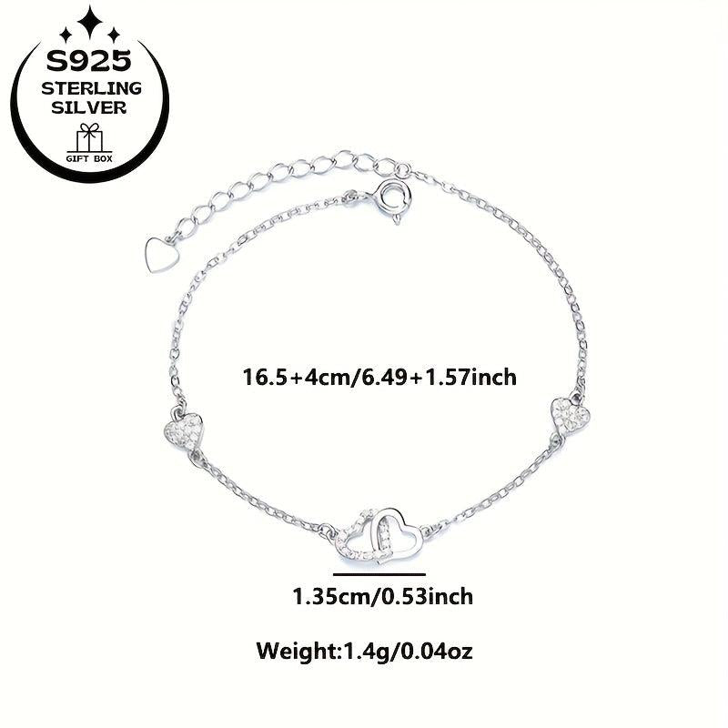 This romantic and sweet bracelet features a double love heart shaped buckle design. Made of 925 silver, it weighs about 1.4 grams, perfect for daily wear or vacation.